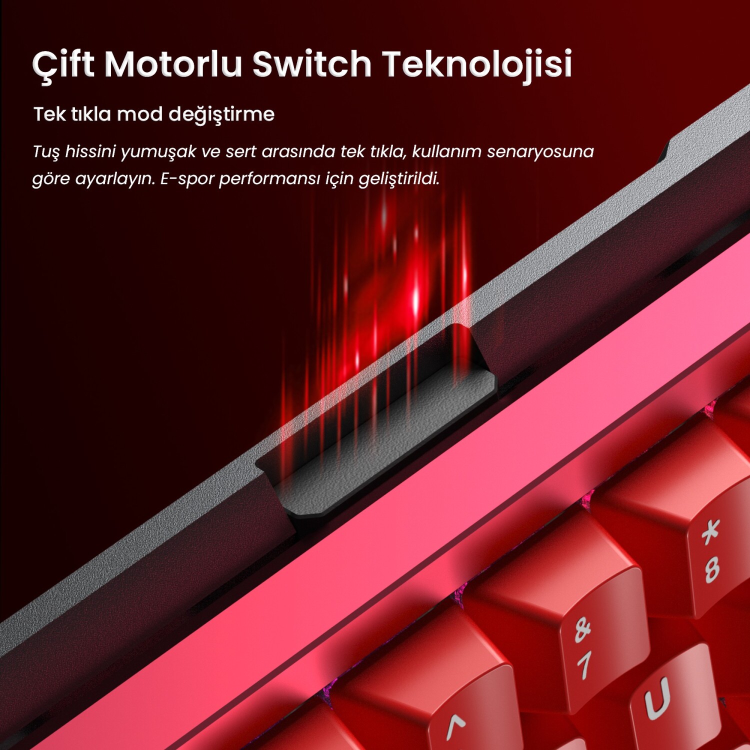 Lazer hassasiyetinde çalışan manyetik anahtarlar, mekanik temas olmadan çalıştığı için tuşların tetikleme mesafesini yazılım üzerinden 0.001mm ile 3.3/3.4mm arasında serbestçe ayarlamanıza imkân tanır. Rapid Trigger (RT) teknolojisi, 0.001mm'ye kadar inen hassasiyetle tuşların basıldığı an sıfırlanmasını sağlayarak parmak hızınızı maksimuma çıkarır.