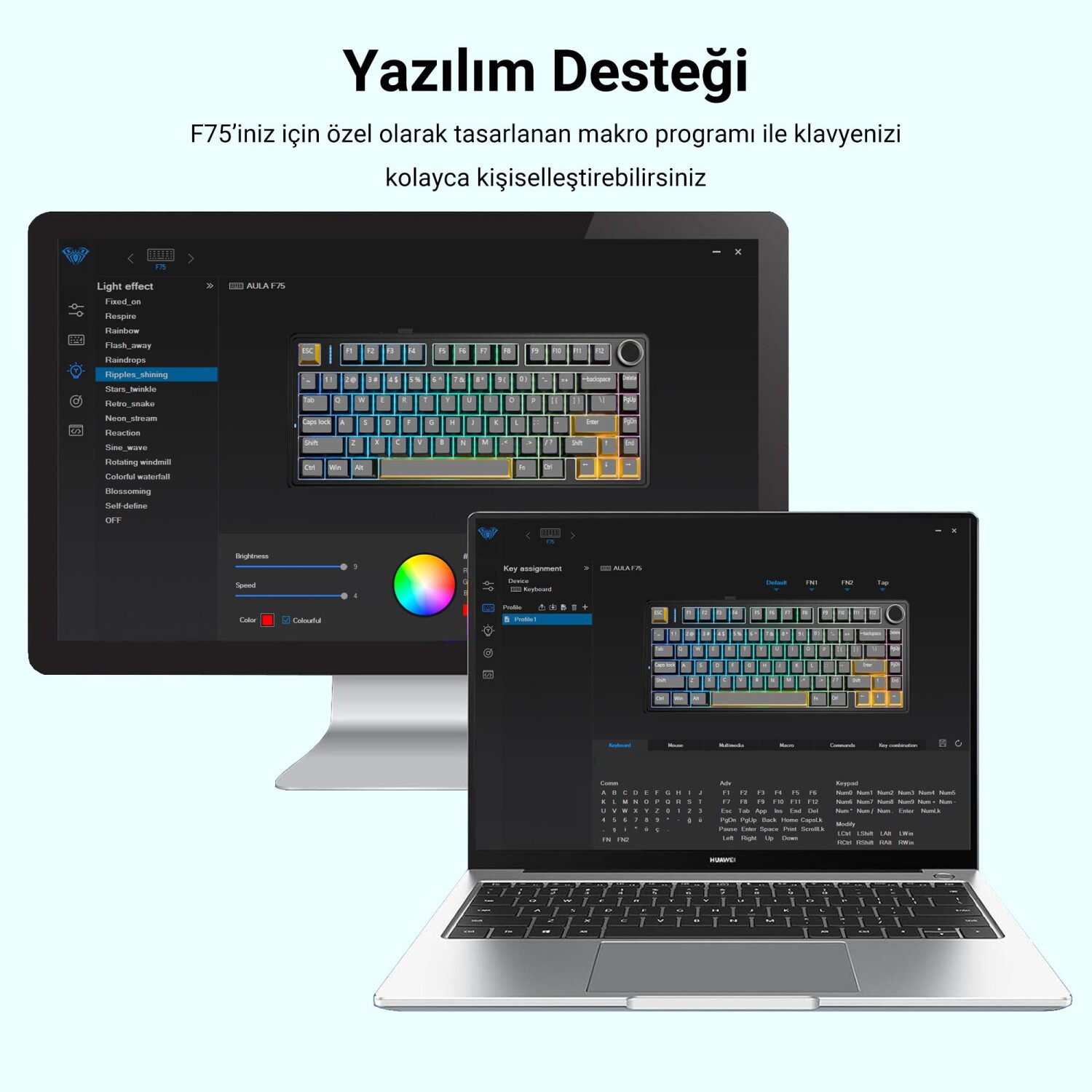 1 x Aula F75 Mekanik RGB TKL Nimbus V3 Switch Kablosuz Makrolu Hot Swap Klavye Buz Mavisi