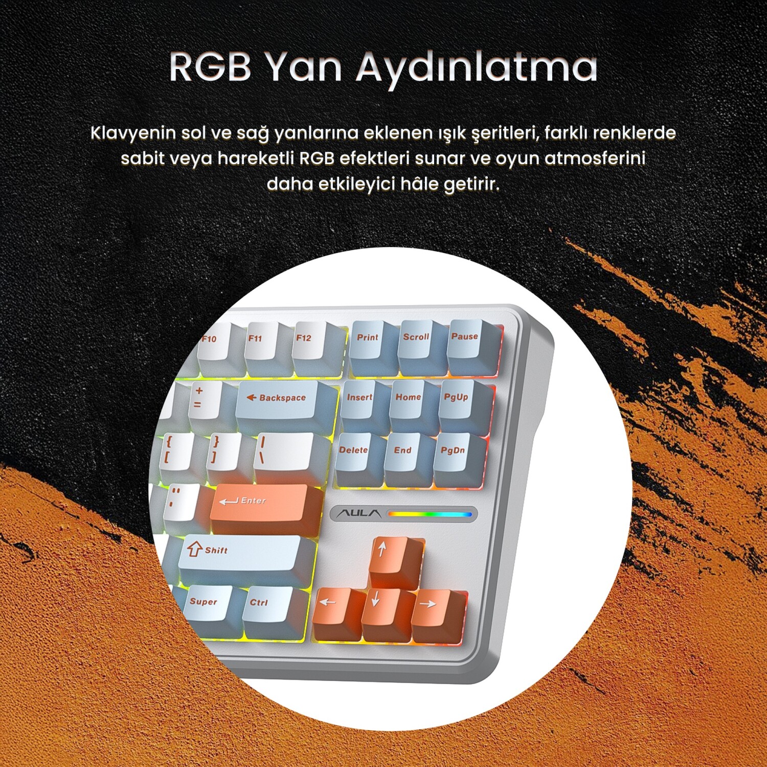 1 x Aula F87 PRO Mekanik RGB TKL Nimbus V3 Switch Kablosuz Makrolu Hot Swap Klavye Turuncu