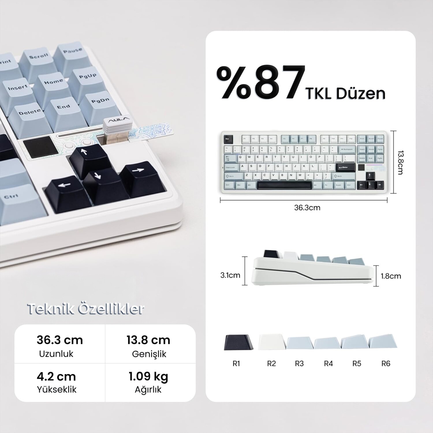 Düzen: %87 TKL Layout, 87 Tuşlu (US Layout)