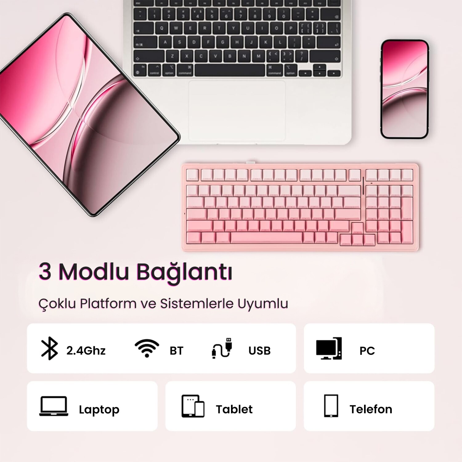 Bağlantı Çeşitleri: Type-C Kablolu / 2.4GHz Kablosuz / Bluetooth
