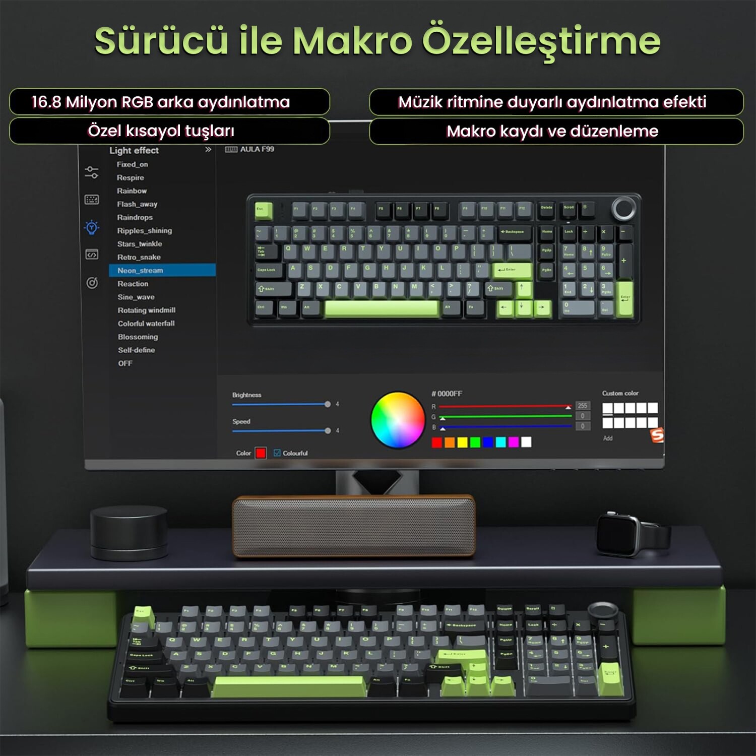 Aydınlatma: Full RGB Arka Aydınlatma & Yan Işık Şeritleri