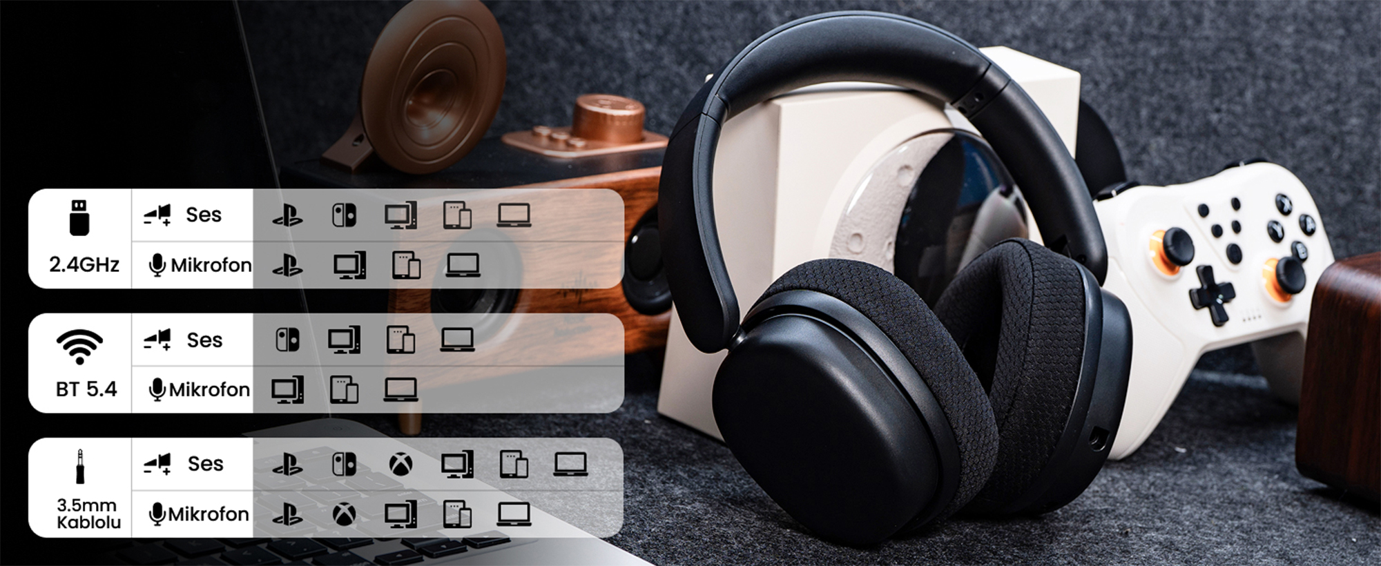 Bağlantı Seçenekleri: 2.4G USB Alıcı / Bluetooth / Kablolu (USB-C to 3.5mm)