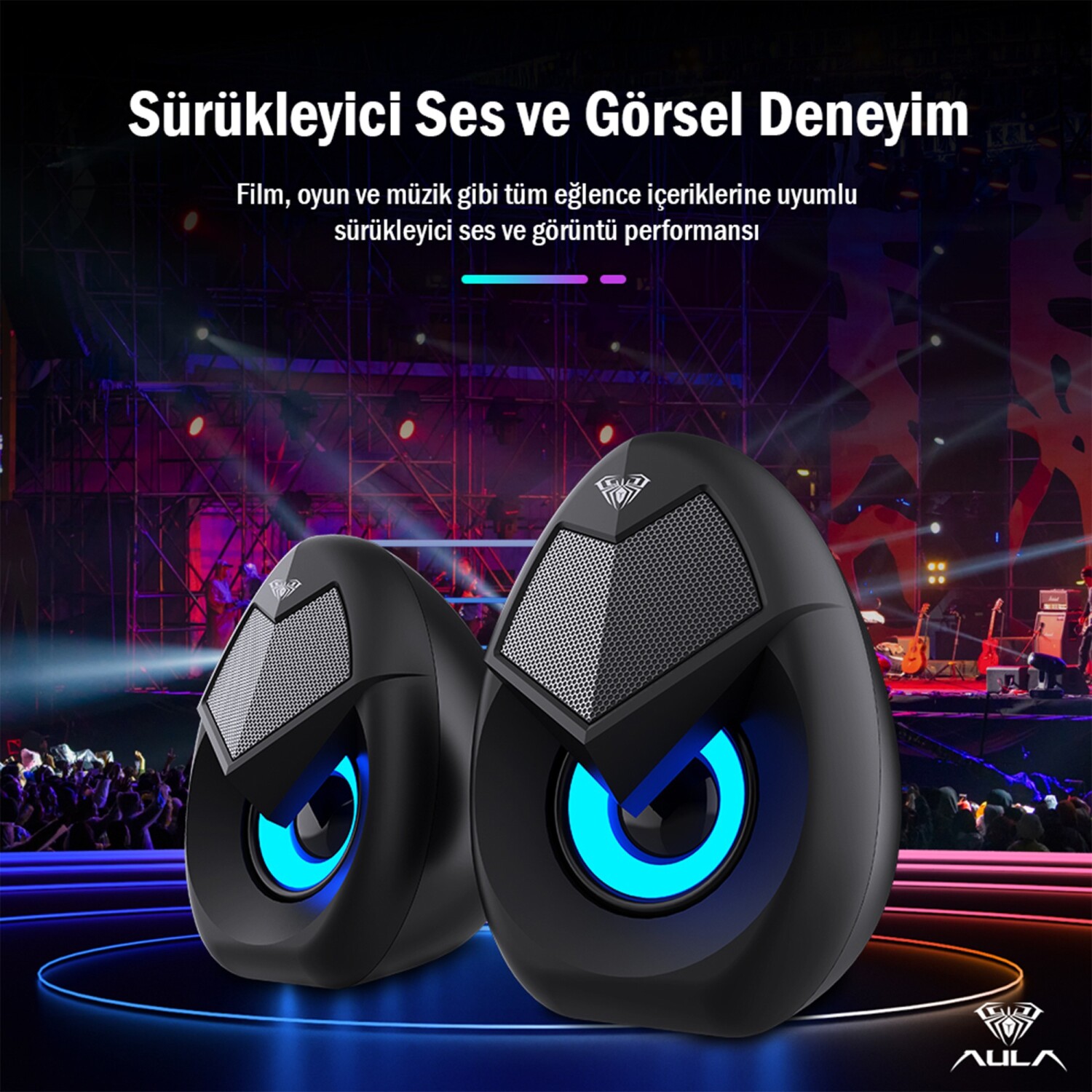 Aula N69 oyuncu hoparlörü, şık tasarımı ve güçlü ses performansıyla masaüstü deneyiminizi bir üst seviyeye taşır. Kompakt yapısı sayesinde masada minimum yer kaplar, RGB ışıklandırması ile modern bir görünüm sunar. Film izleme, müzik dinleme ve oyun oynama gibi tüm multimedya içeriklerinde net ve dengeli ses kalitesi sunar. USB üzerinden güç alır, 3.5 mm AUX girişiyle ise birçok cihazla uyumlu şekilde çalışır. Tak-çalıştır yapısıyla sürücü gerektirmez, kullanımı son derece pratiktir.