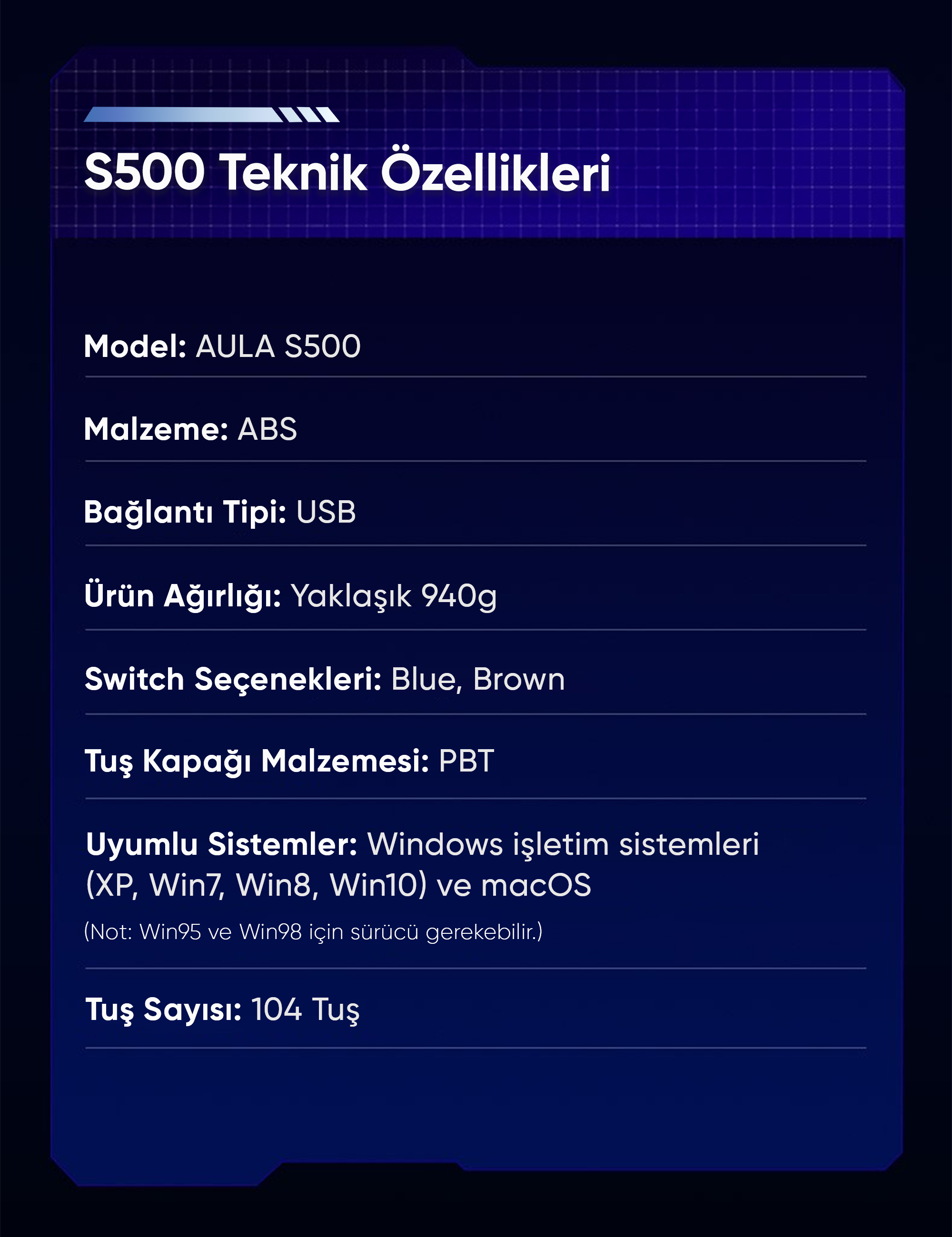 • 1 x Aula S500 Mekanik Klavye