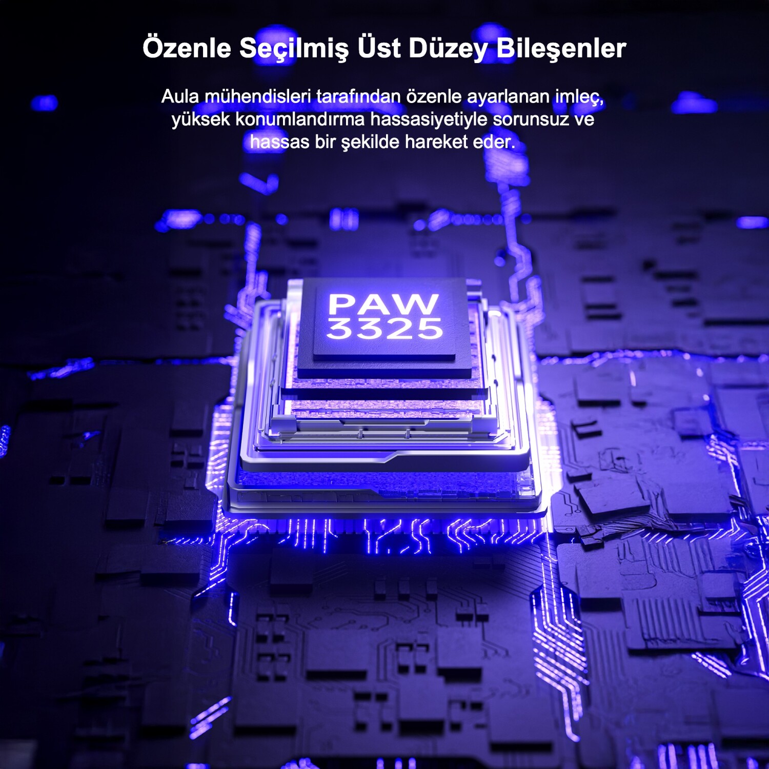 AULA SC580X gaming mouse, profesyonel oyuncular için geliştirilmiş PAW3311 sensör teknolojisi ile donatılmış yüksek performanslı bir oyuncu mousedur. 1000Hz yenileme hızı ve 10000 DPI hassasiyeti ile lag-free oyun deneyimi sunan bu kablosuz oyuncu mouse, 3 farklı bağlantı modu ile her platformda mükemmel uyumluluk sağlar.