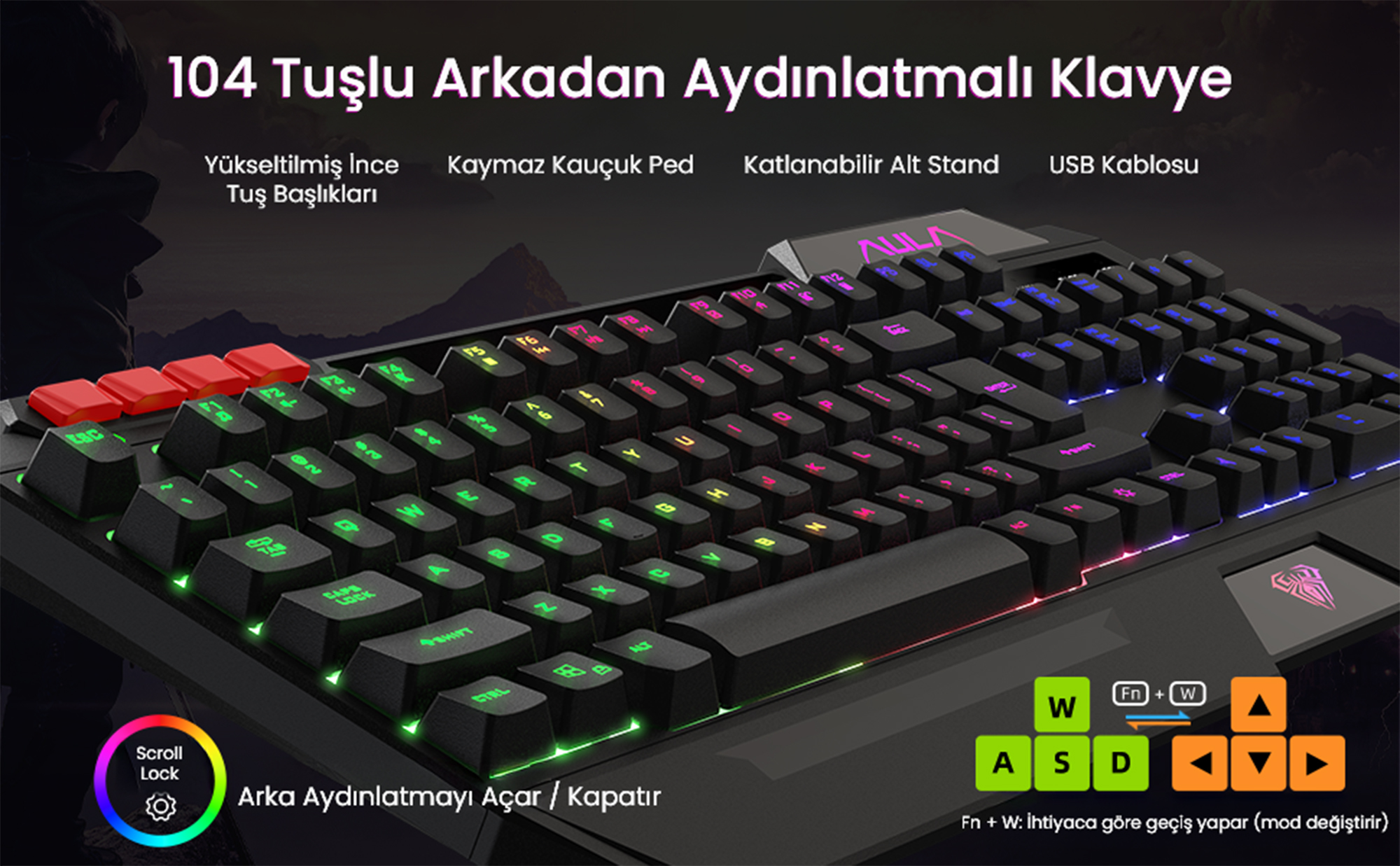 1 x AULA RGB Işıklı Kablolu Oyuncu Klavyesi