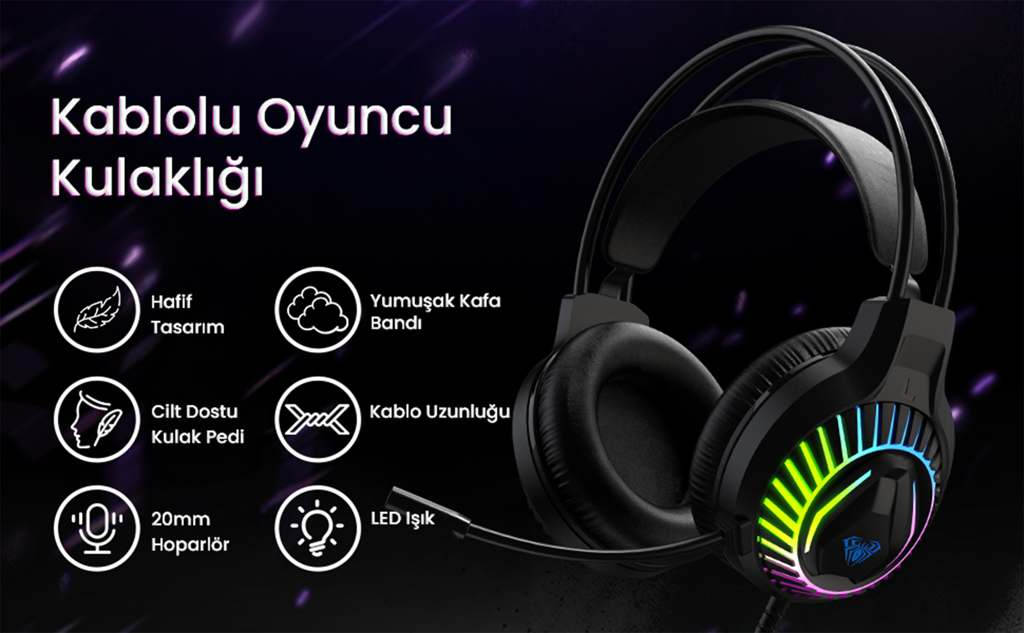 Savaş alanındaki en ufak bir ayak sesini bile kaçırmayın! 50 mm çapındaki devasa profesyonel hoparlör sürücüleri, derin baslar ve kristal netliğinde tizler üreterek çevresel sesleri en gerçekçi haliyle kulaklarınıza taşır. Sadece 288 gram olan hafif yapısı, cildinize nefes aldıran cilt dostu esnek kafa bandı ve ultra yumuşak kulak pedleri ile saatlerce başınızda olduğunu unutacağınız bir konfor sunar. Yüksek kaliteli dahili mikrofonu takım arkadaşlarınızla net bir iletişim kurmanızı sağlarken, dış yüzeyindeki dairesel LED ışıklandırma oyun atmosferinizi tamamlar.