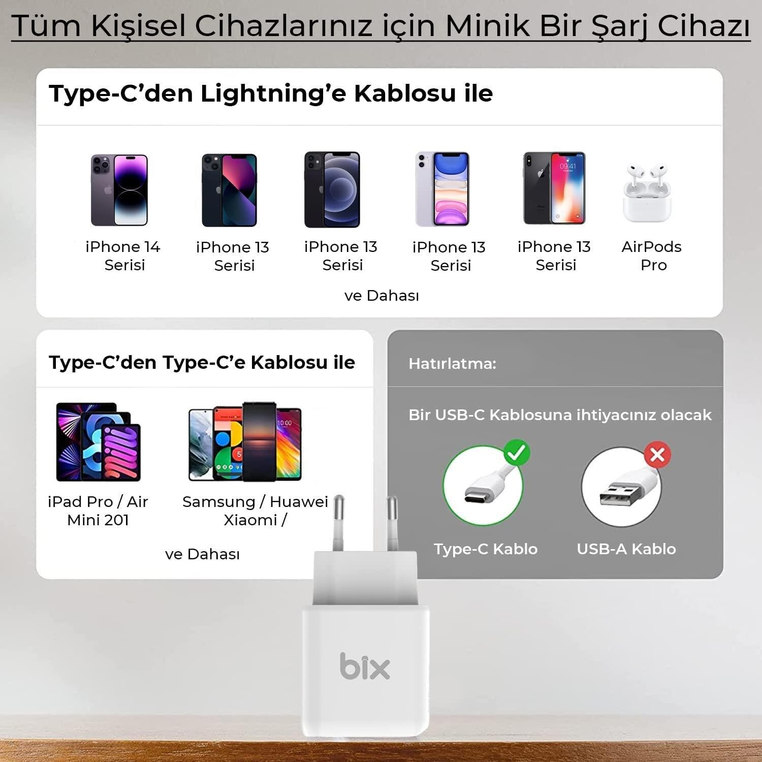 1 x Bix BX-PD20TA 20W PD Hızlı Şarj Adaptörü
