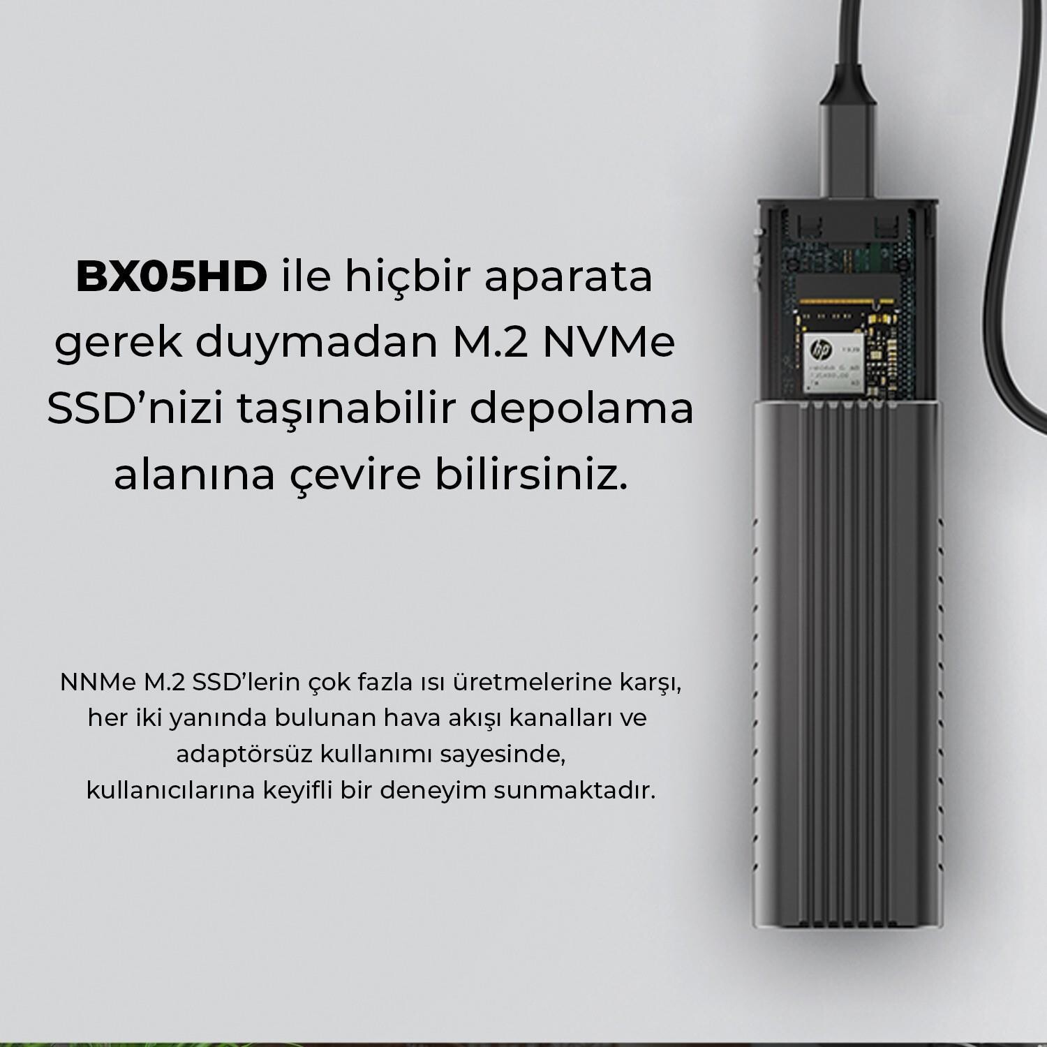 Ayrıca NVMe M2 SSD’lerin çok fazla ısı üretmelerine karşı, BX05HD her iki yanında bulunan hava akışı kanalları ve adaptörsüz kullanımı sayesinde, kullanıcılarına keyifli bir deneyim sunmaktadır.