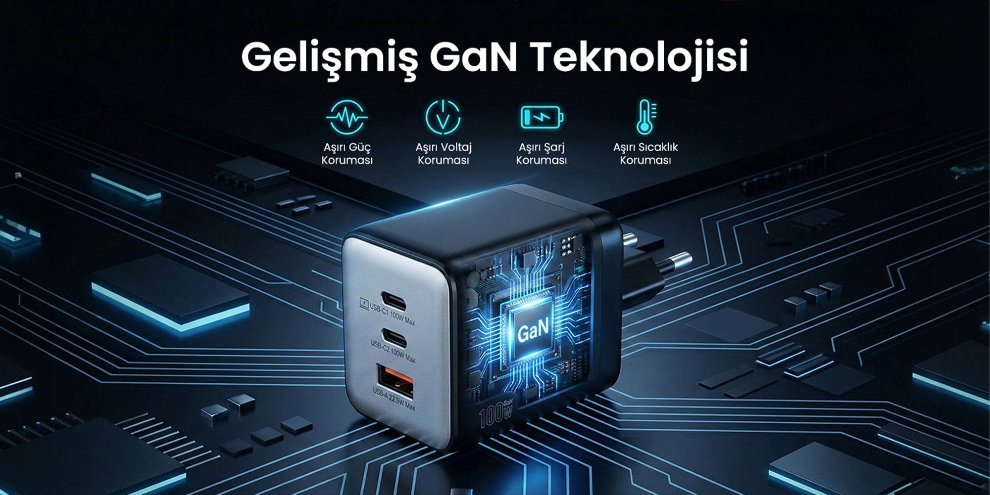 Bix’in bu 100W hızlı şarj cihazında kullanılan GaN teknolojisi, geleneksel şarj cihazlarına kıyasla daha yüksek enerji verimliliği sağlar. GaN teknolojisi, cihazın ısınmasını önleyerek uzun ömürlü kullanım sunarken daha yüksek güç çıkışlarını daha küçük bir formda sağlamaya olanak tanır. Bu sayede Bix GaN şarj cihazı, şarj performansından ödün vermeden kompakt boyutlarda üstün bir güç sağlar.