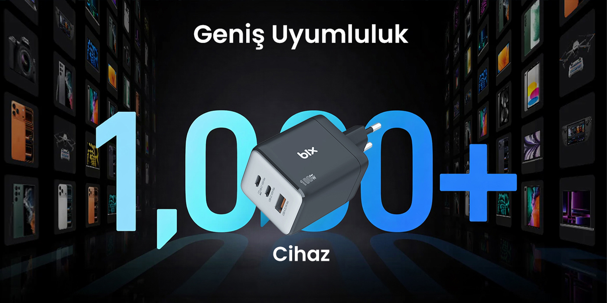 100W’a kadar güç sağlayabilen Bix GaN hızlı şarj cihazı, USB-C PD (Power Delivery) destekli dizüstü bilgisayarlar için idealdir. MacBook, MacBook Air, Dell XPS, Lenovo, HP, ASUS, Huawei MateBook gibi USB-C uyumlu laptopları hızlı ve güvenli bir şekilde şarj edebilir. Bu özellik, iş hayatında ve seyahatlerde dizüstü bilgisayarınızın şarj sorununu çözmenize yardımcı olur.