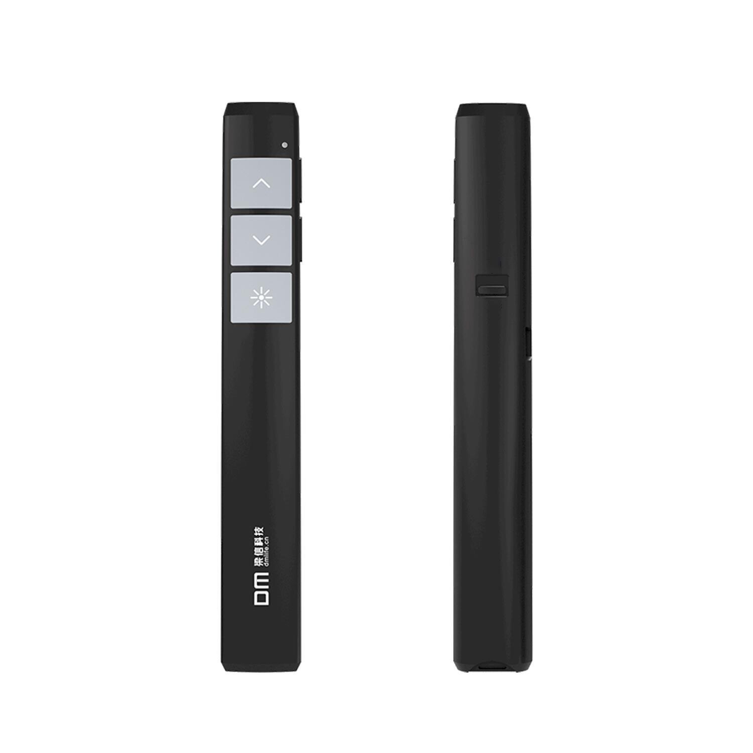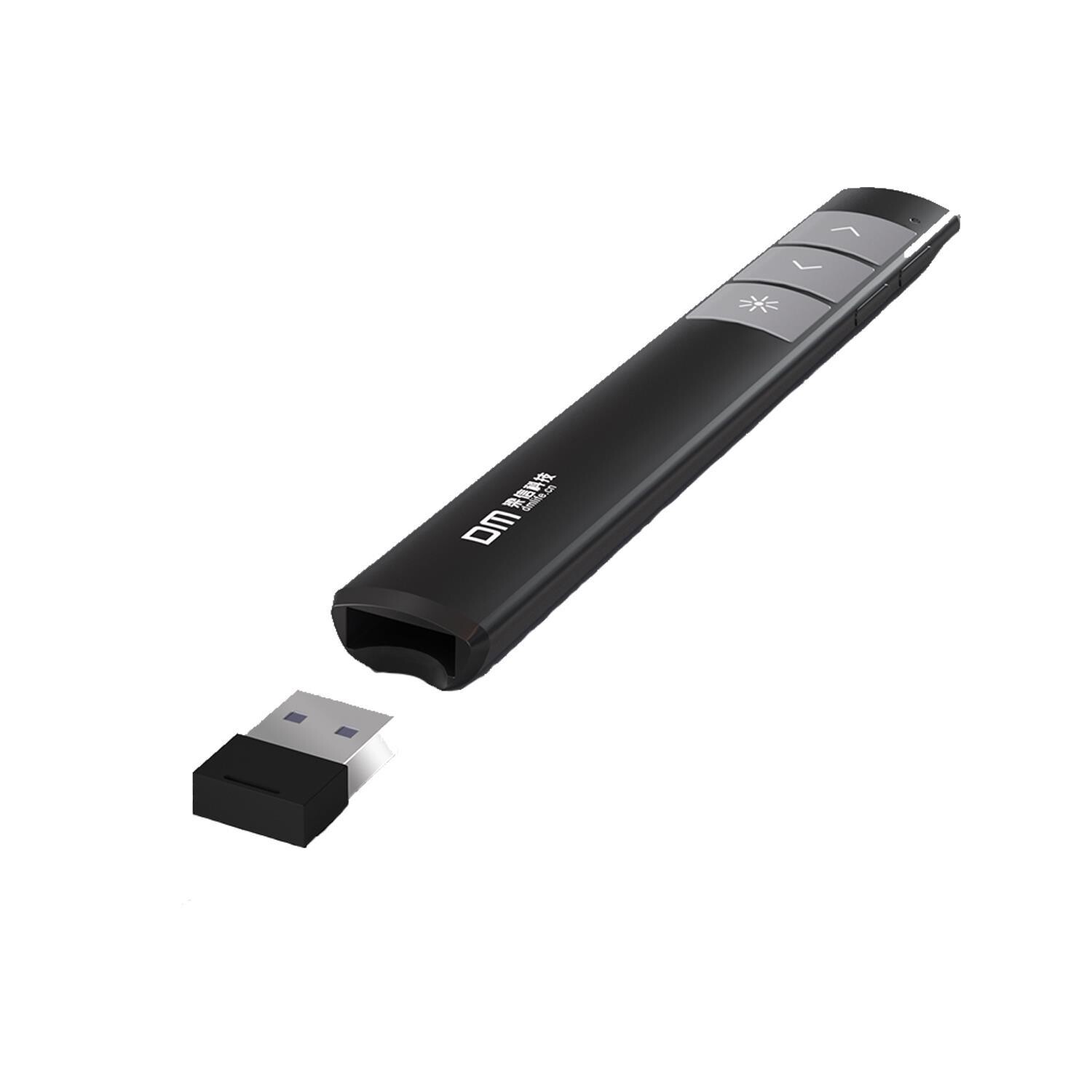 DM PT003 2.4GHz kablosuz teknolojisi sayesinde 100 metreye kadar kullanım alanı sunmaktadır. İçerisinde bulunan birinci sınıf mikroçip sayesinde geniş kontrol mesafesinin yanında 200 metreye kadarda kırmızı ışık aralığı sunmaktadır. Bir sunumun önemli kısımlarını vurgulamak için kolayca görülebilen parlak kırmızı ışık üretmektedir. Kumanda kullanımı için herhangi bir sürücü yüklemeye gerek kalmadan tak çalıştır olarak kullanabilirsiniz. Piyasadaki cihazlardan farklı olarak harici pil ile değil Micro USB portu üzerinden şarj edilerek kullanılmaktadır. Şarjlı olması sizleri pil maliyetinden kurtaracaktır. Alt kısmında bulunan alıcı yuvasının üst kısmında mıknatıs bulunmakta olup alıcının kaybolmasının önüne geçmektedir. Üzerinde bulunan tuşlar ile sayfalar arasında yukarı aşağı geçiş, tam ekran – tam ekrandan çıkma, siyah ekran, ALT+TAB sekmeler arasında geçiş ve kapatma işlemi yapılabilmektedir. Kompakt boyutu sayesinde saklaması ve yanınızda taşıması oldukça kolaydır. Bu kablosuz sunum kumandası aynı zamanda güçlü ve dayanıklı olan kaliteli PVC + ABC malzemeden yapılmıştır.