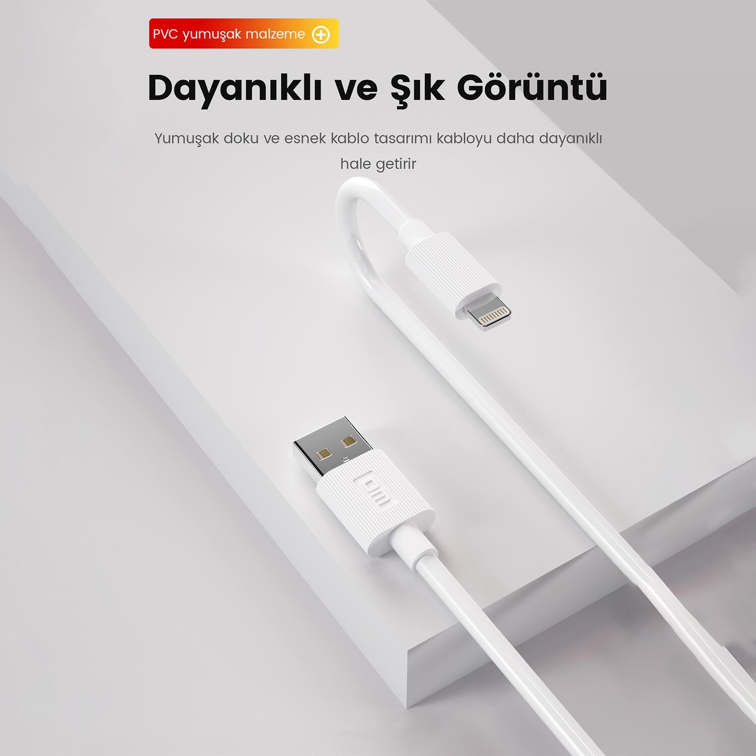 1 x DM SL010 Apple iPhone USB Lightning Data ve Şarj Kablosu Beyaz 1 Metre