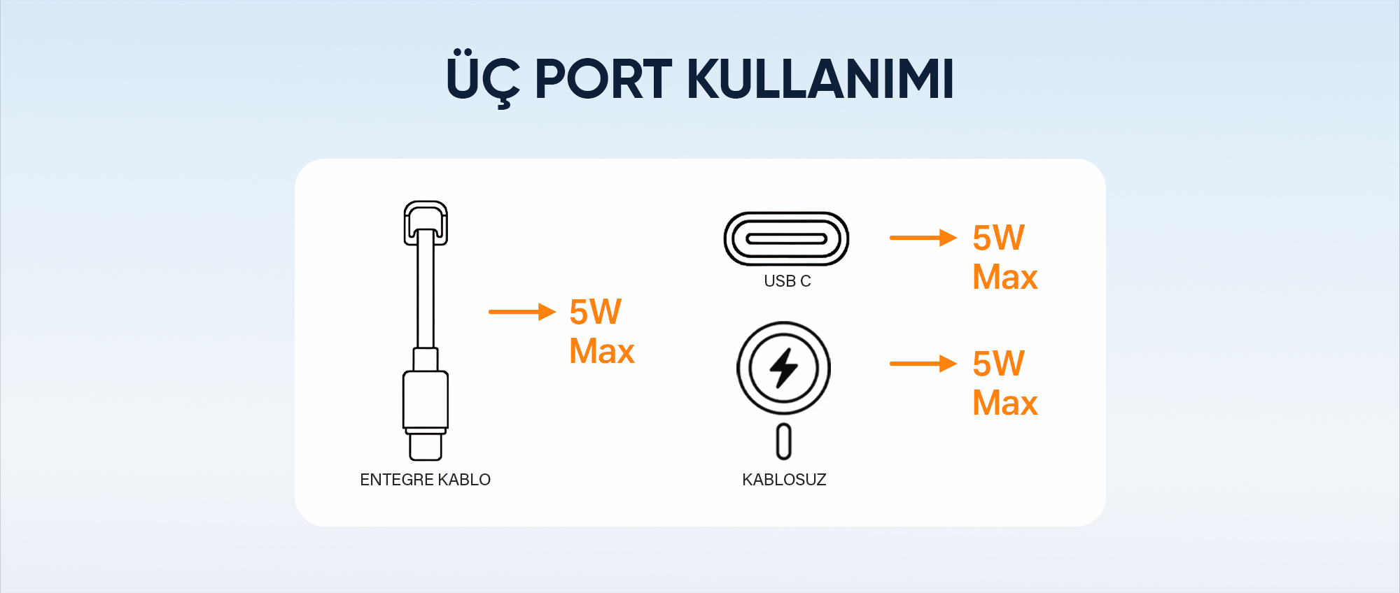 • Kablo + Type-C port + Kablosuz ile 5W + 5W + 5W