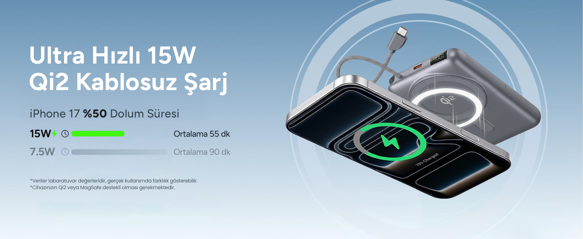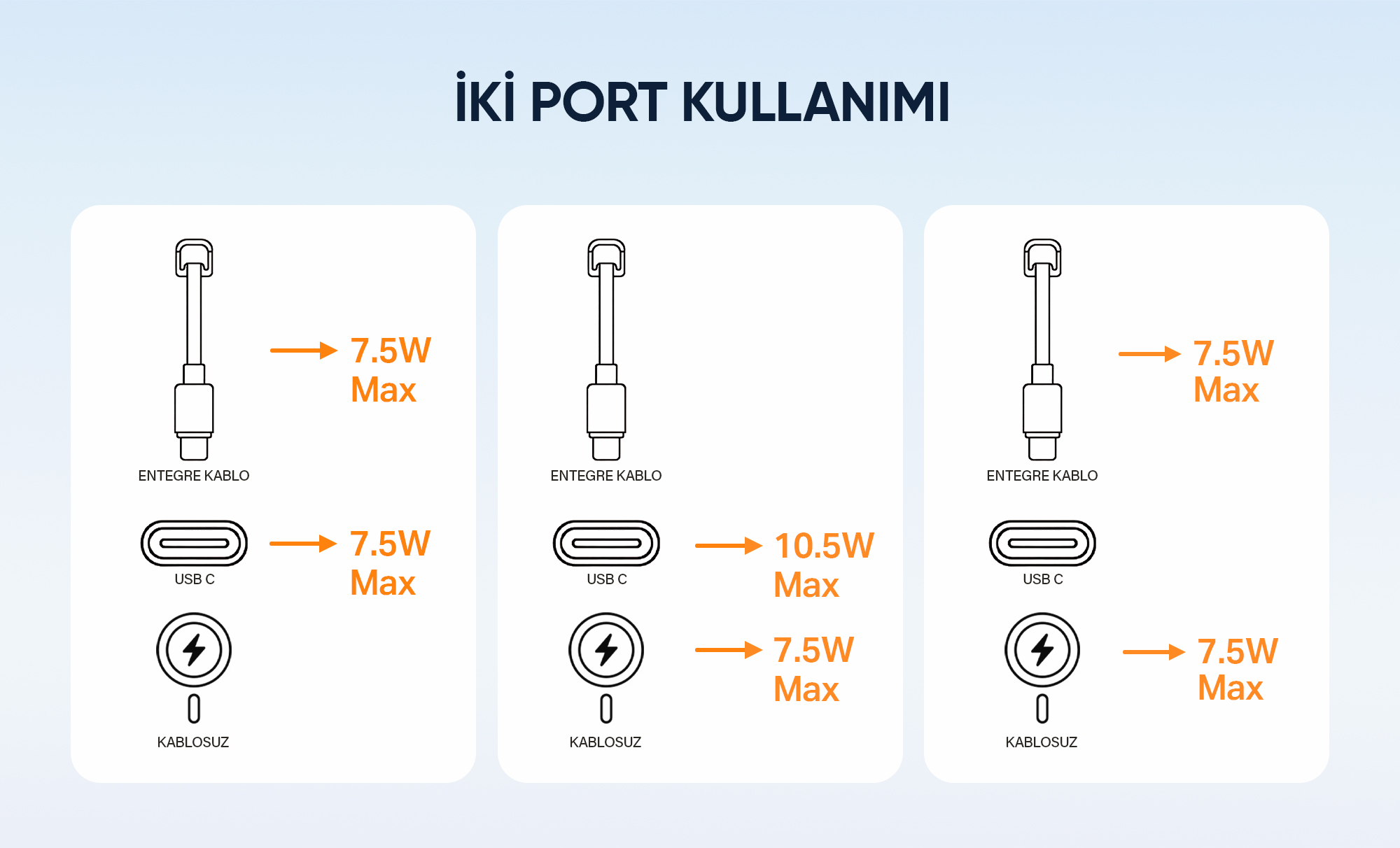 • Kablo + Type-C port ile 7.5W + 7.5W