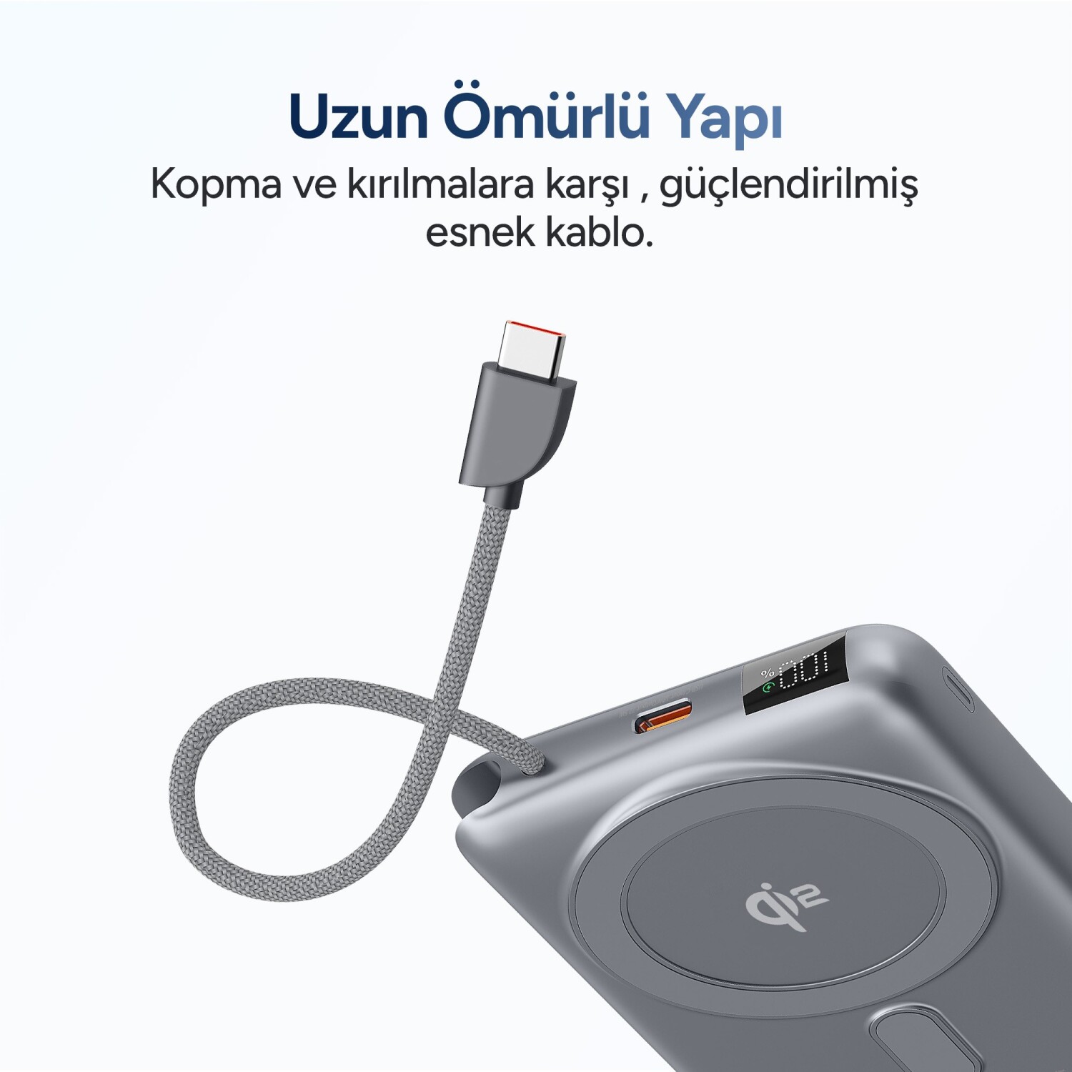 Juo 10000 mAh Qi2 Kablosuz Şarj Powerbank, taşınabilir güç ihtiyacınızı karşılayan pratik bir çözümüdür. 10000 mAh yüksek kapasite ile cihazlarınızı uzun süreli kullanımlar için şarj altında tutmanıza olanak tanır. Dahili Type-C kablo tasarımı, ekstra kablo ihtiyacını ortadan kaldırarak her an yanınızda olacak şekilde tasarlanmıştır. 22.5W maksimum çıkış gücü ile hızlı şarj destekler ve 15W Qi2 kablosuz şarj özelliği ile akıllı telefonlarınızı kolayca şarj edebilirsiniz.