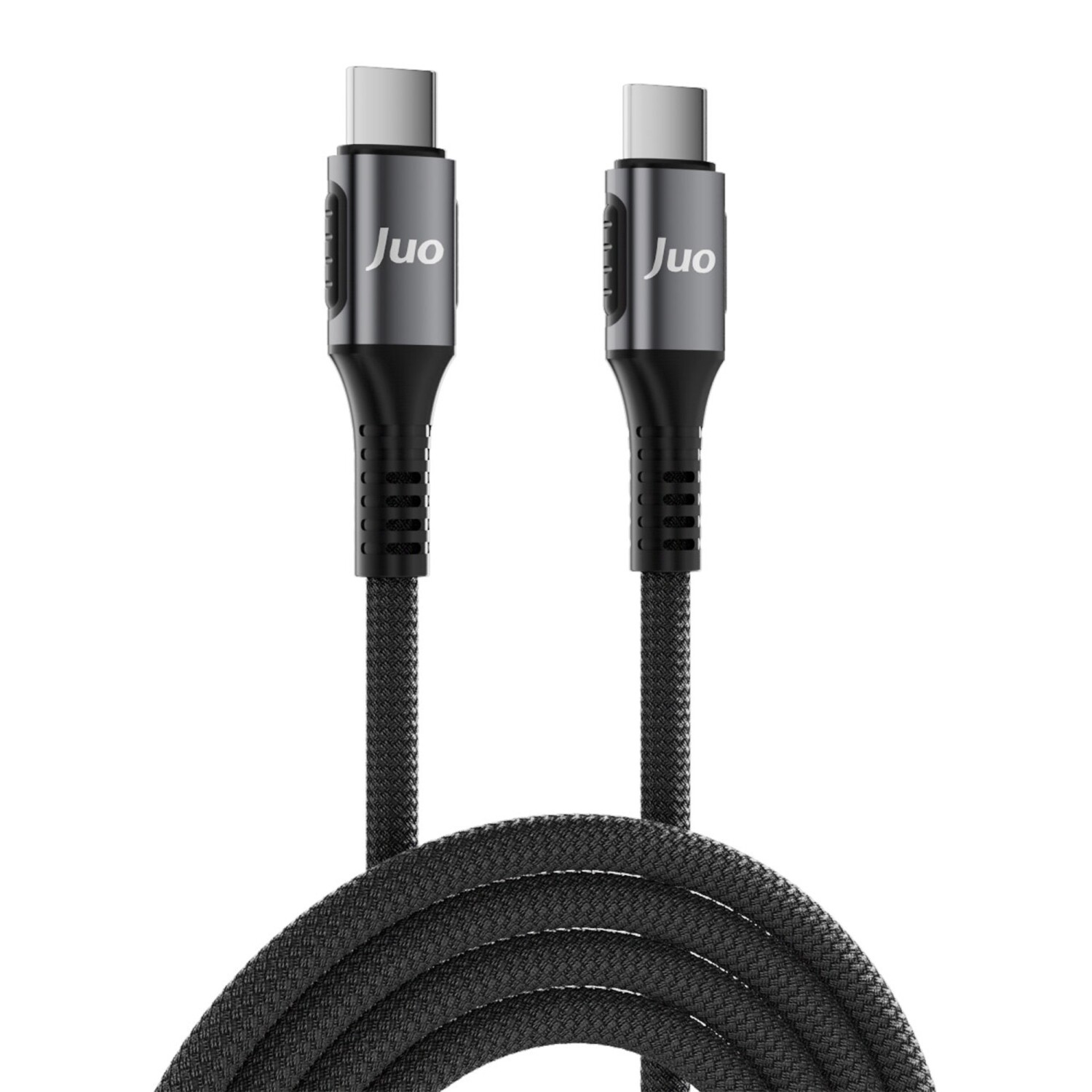 1 x Juo 100W 5A E-Mark Çipli PD Type-C to Type-C Örgülü Hızlı Şarj ve Data Kablosu Siyah 1 Metre