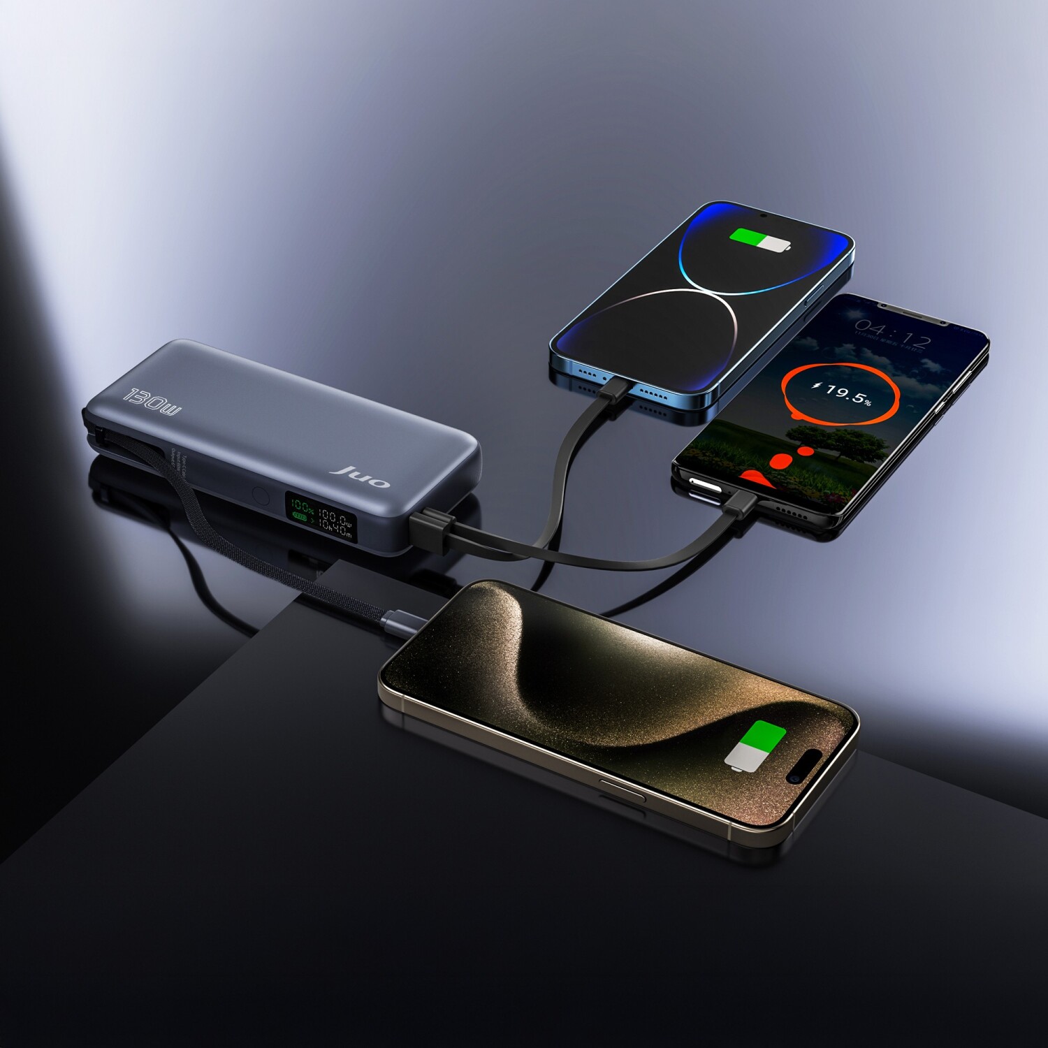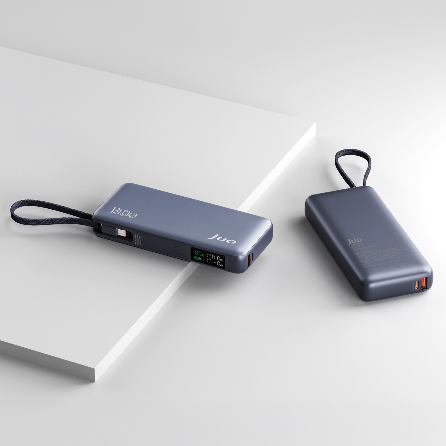 1 x Juo 20000mAh 130W LED Ekranlı USB-A + Type-C Kablolu Powerbank Taşınabilir Hızlı Şarj Cihazı