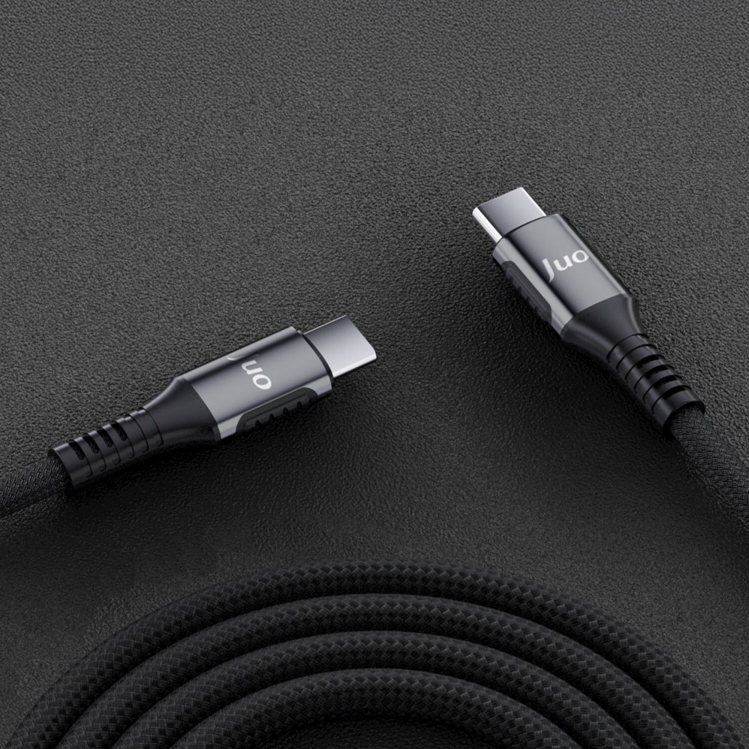 1 x Juo 240W 5A E-Mark Çipli PD Type-C to Type-C Örgülü Hızlı Şarj ve Data Kablosu Siyah 2 Metre