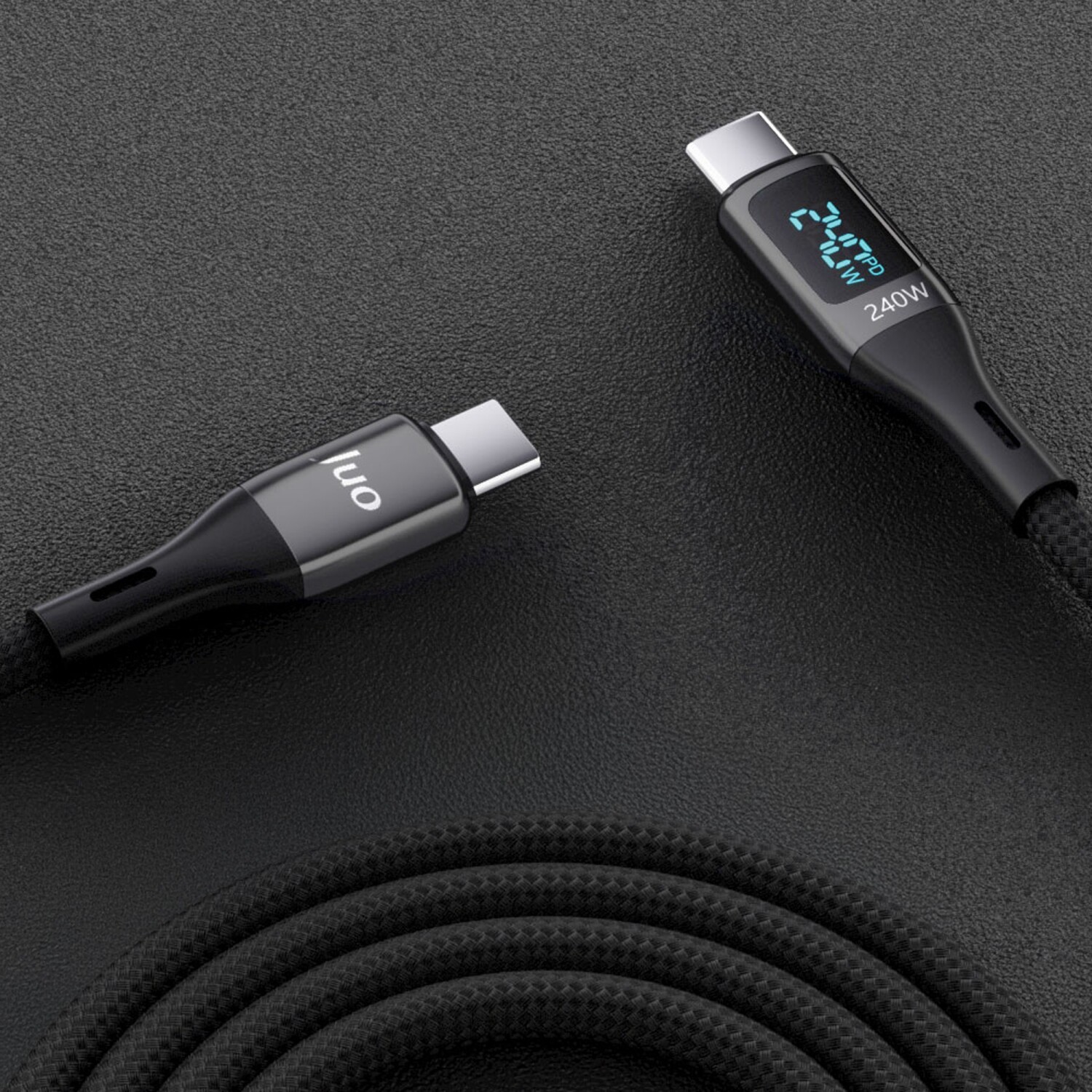 1 x Juo 240W Dijital Led Ekranlı E-Mark Çipli PD 3.1 USB Type-C to Type-C Hızlı Şarj ve Data Kablosu 2 Metre