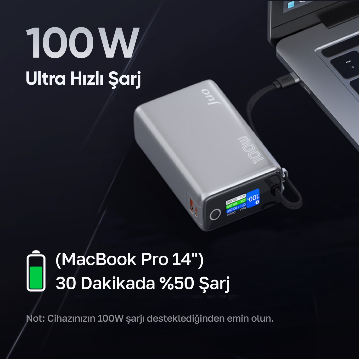 • Type-C kablo ile 100W
