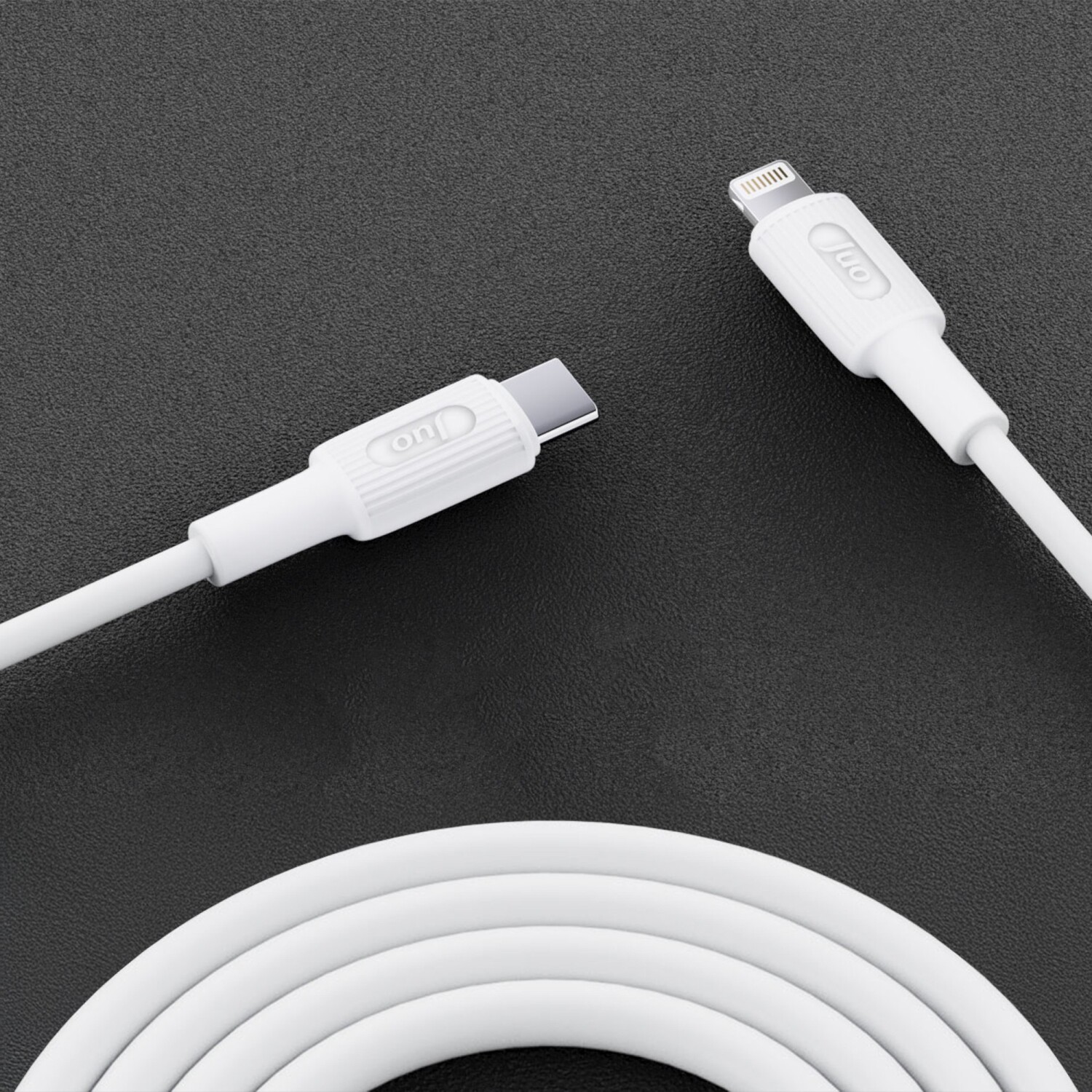 1 x Juo 27W USB Type-C to Lightning iPhone iPad Silikon Hızlı Şarj ve Data Kablosu Beyaz 2 Metre