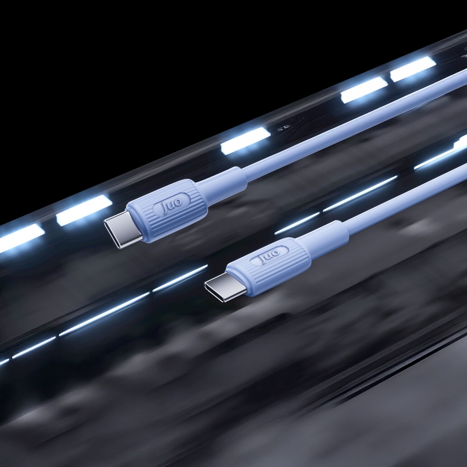 1 x Juo 60W USB Type-C to Type-C Silikon Hızlı Şarj ve Data Kablosu Mavi 1 Metre