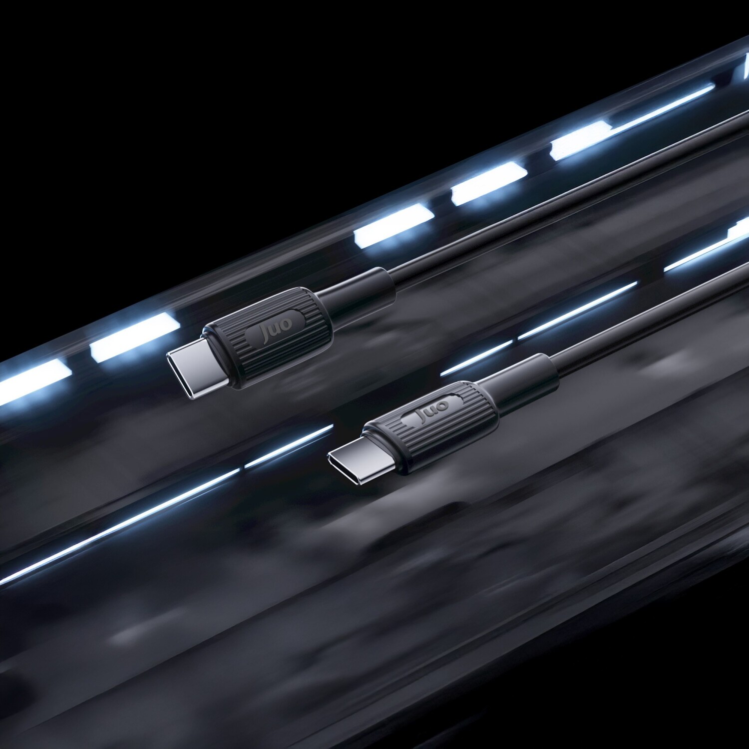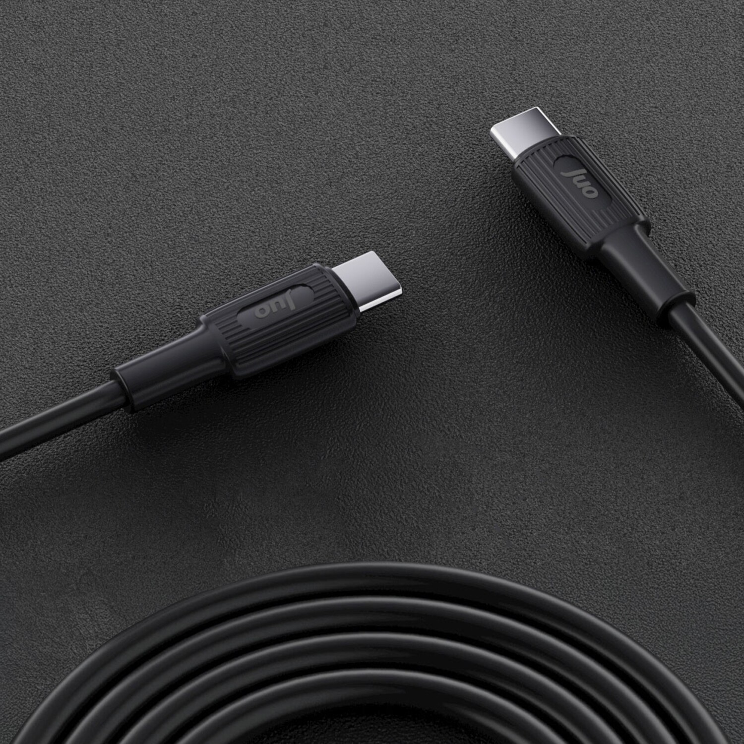 1 x Juo 60W USB Type-C to Type-C Silikon Hızlı Şarj ve Data Kablosu Siyah 2 Metre