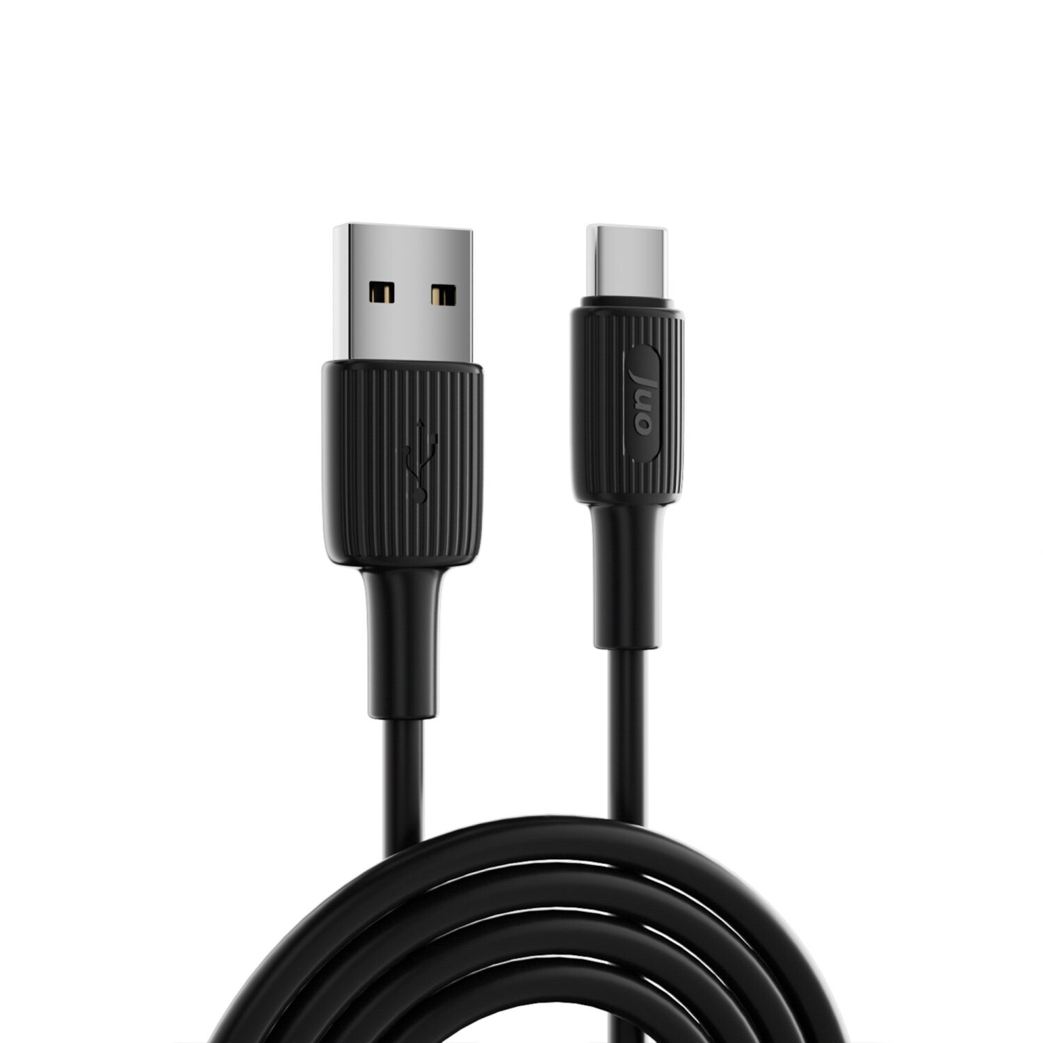 1 x Juo 66W USB-A to USB Type-C Silikon Hızlı Şarj ve Data Kablosu Siyah 1 Metre