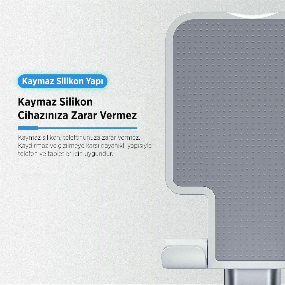 Masaüstü telefon standı olarak geliştirilen ürün, 4 santim’e kadar harici yükseklik seviyesi sunan ayarlanabilir telefon standı yapısıyla ideal görüntüleme açısı sağlar. Ergonomik telefon tutucu tasarımı sayesinde uzun süreli kullanımlarda bile konfor sunar.