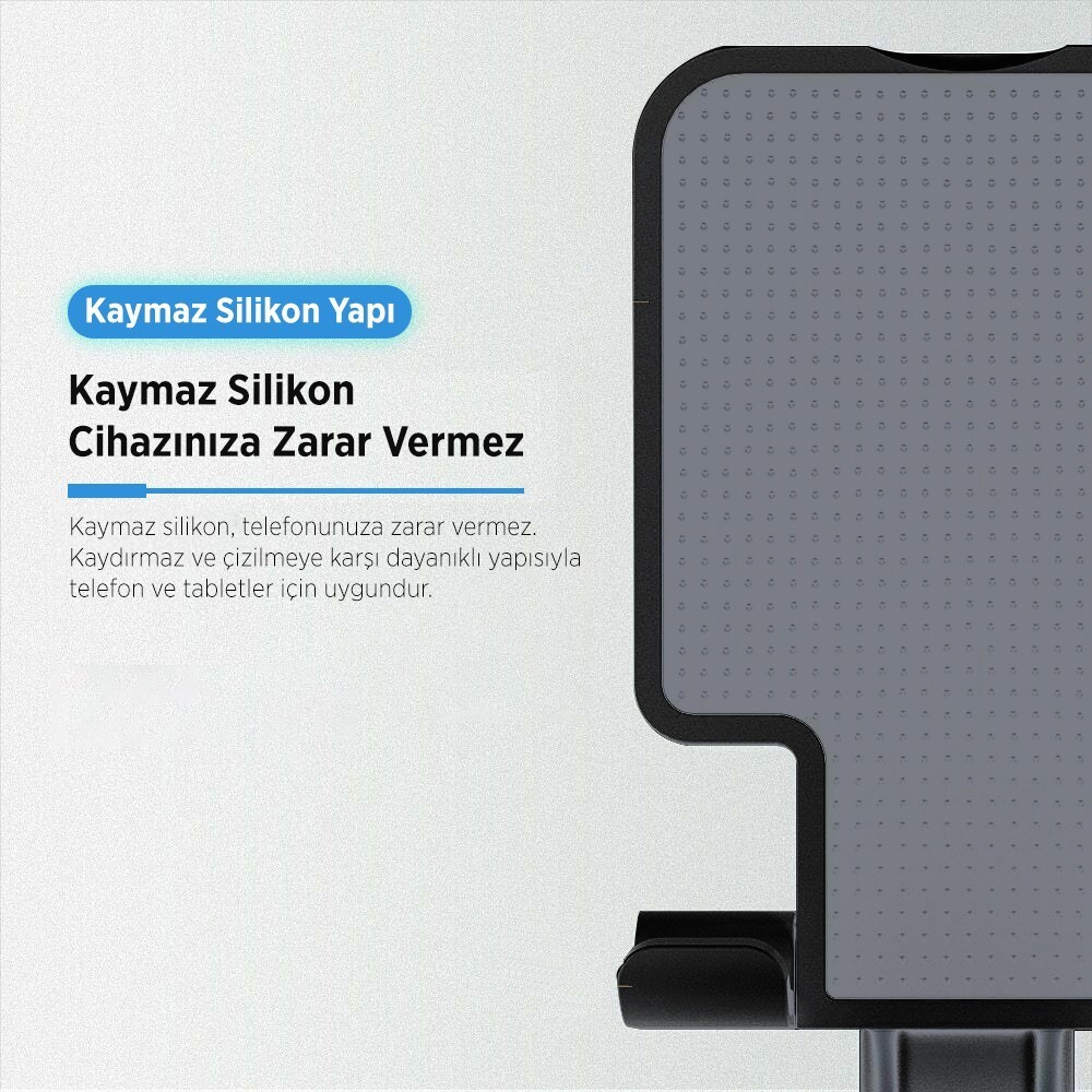 Yüksek kaliteli ABS plastik telefon standı gövdesi, kaymaz silikon yüzeyi ve dayanıklı çelik levha desteğiyle 350 grama kadar yük taşıma kapasitesi sunar. Sağlam yapısı uzun ömürlü kullanım garantisi verir.