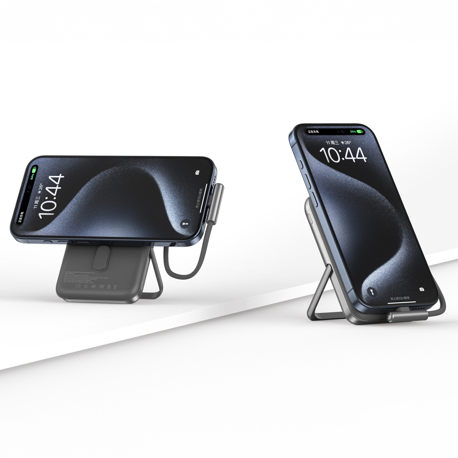 1 x Juo Magsafe Powerbank 10000mAh Standlı 20W Dahili Type-C Kablolu Hızlı Taşınabilir Şarj Cihazı Siyah