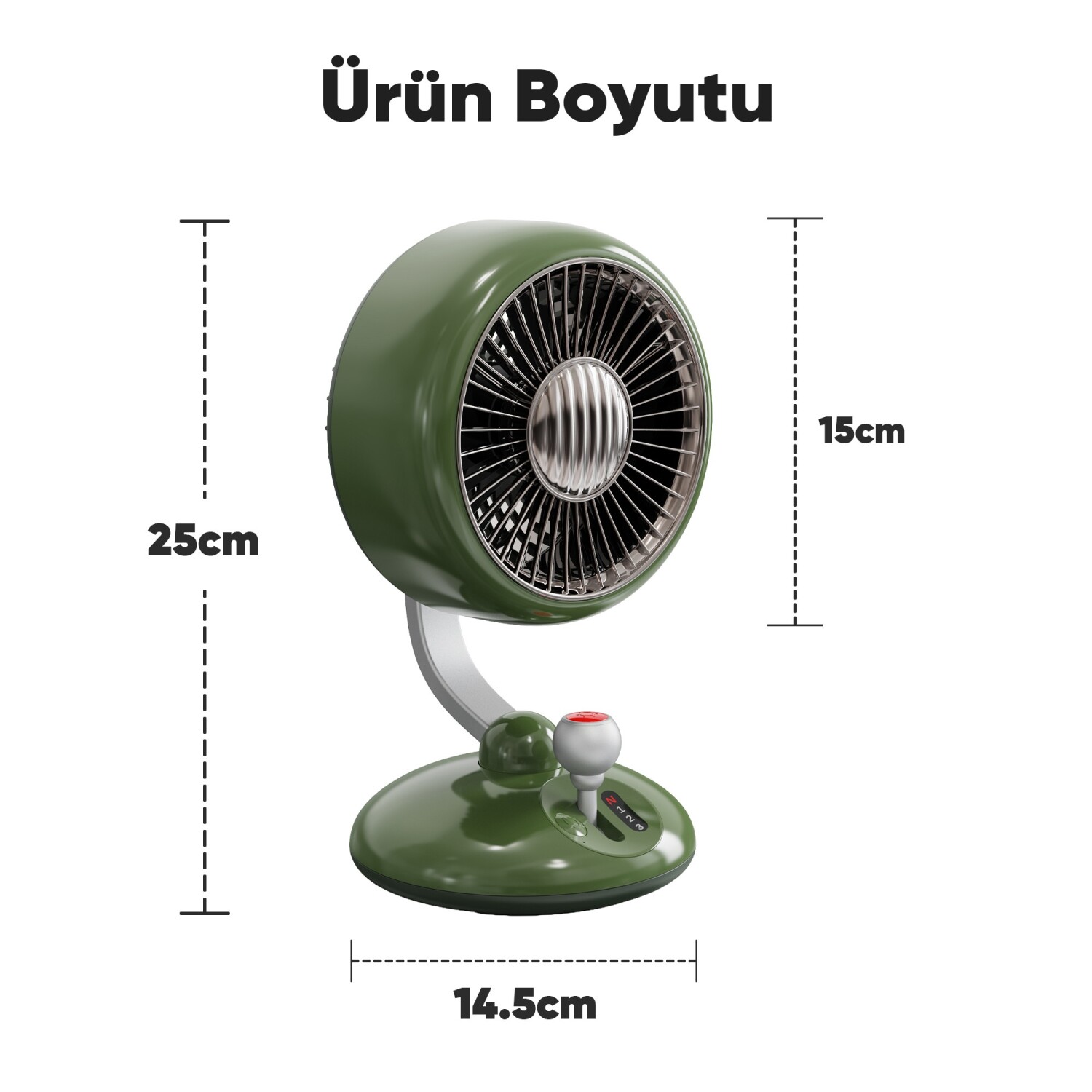 Juo Q3, nostaljik çizgilere sahip retro masaüstü fan tasarımıyla klasik görünümü modern teknolojiyle birleştirir. Dekoratif yapısı sayesinde yalnızca bir mini vantilatör değil, aynı zamanda çalışma masası, ofis veya yatak odası için estetik bir tamamlayıcıdır. Kompakt ve şık formu sayesinde bulunduğu ortama karakter katar, hem işlevsel hem de dekoratif bir taşınabilir fan çözümü sunar.