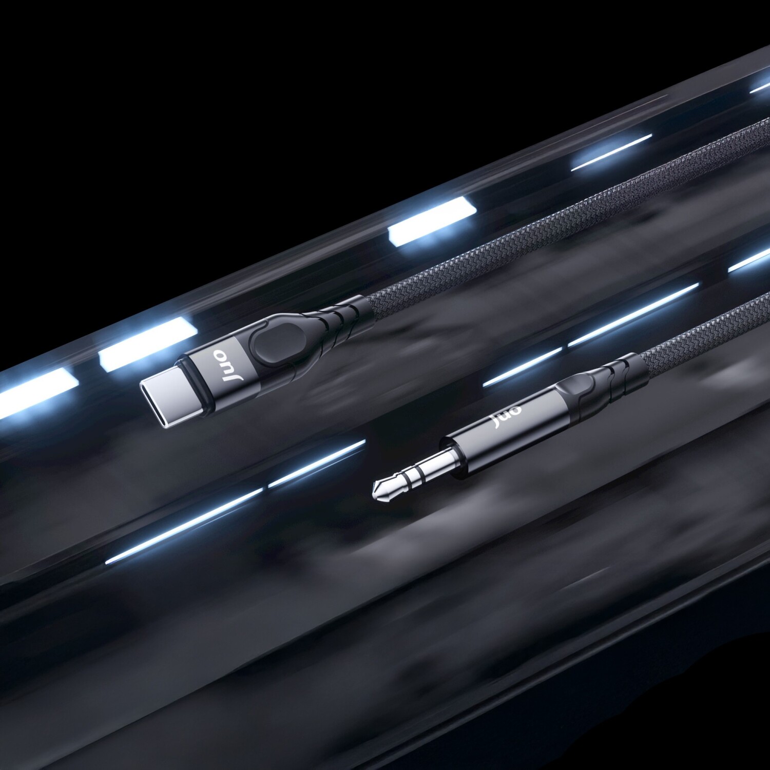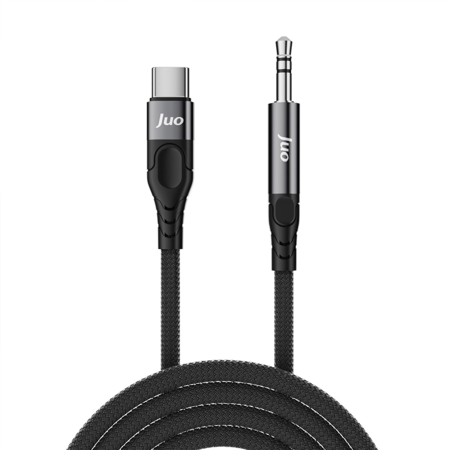 Juo JDCMA35 USB-C to 3.5mm erkek jack aux kablosu Type-C cihazlarınızı araç stereosuna, ev stereo sistemine, hoparlöre, kulaklıklara veya standart 3,5 mm ses jakı veya AUX bağlantı noktasına sahip herhangi bir cihaza kolayca bağlayabilir ve size müzik dinleme özgürlüğü verir. Bu USB C - 3,5 mm aux kablosu, gelişmiş DAC akıllı çipini benimser, yüksek çözünürlüklü ses sunar, güçlü gürültü azaltma sağlar, daha yüksek kalitede ses elde edebilirsiniz.