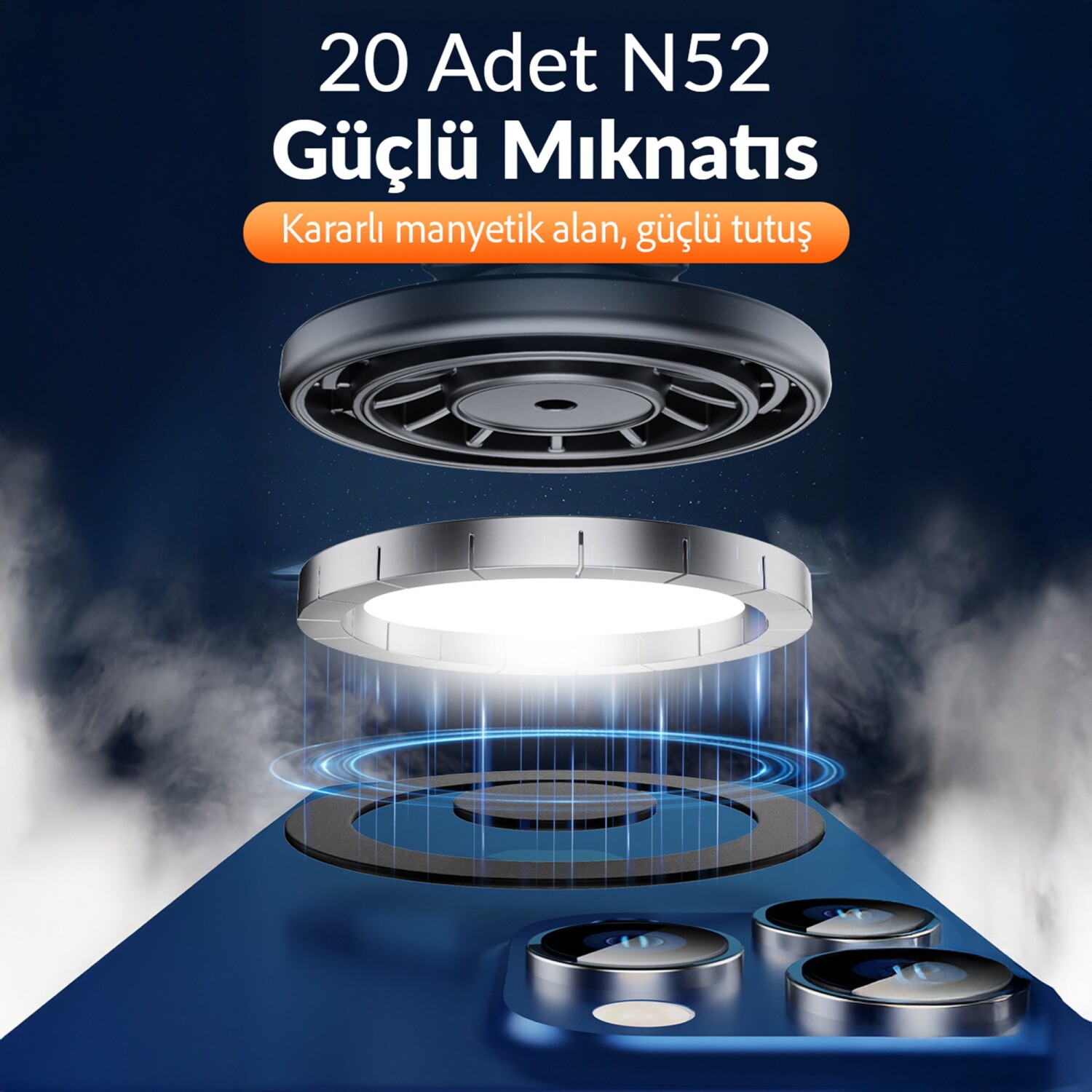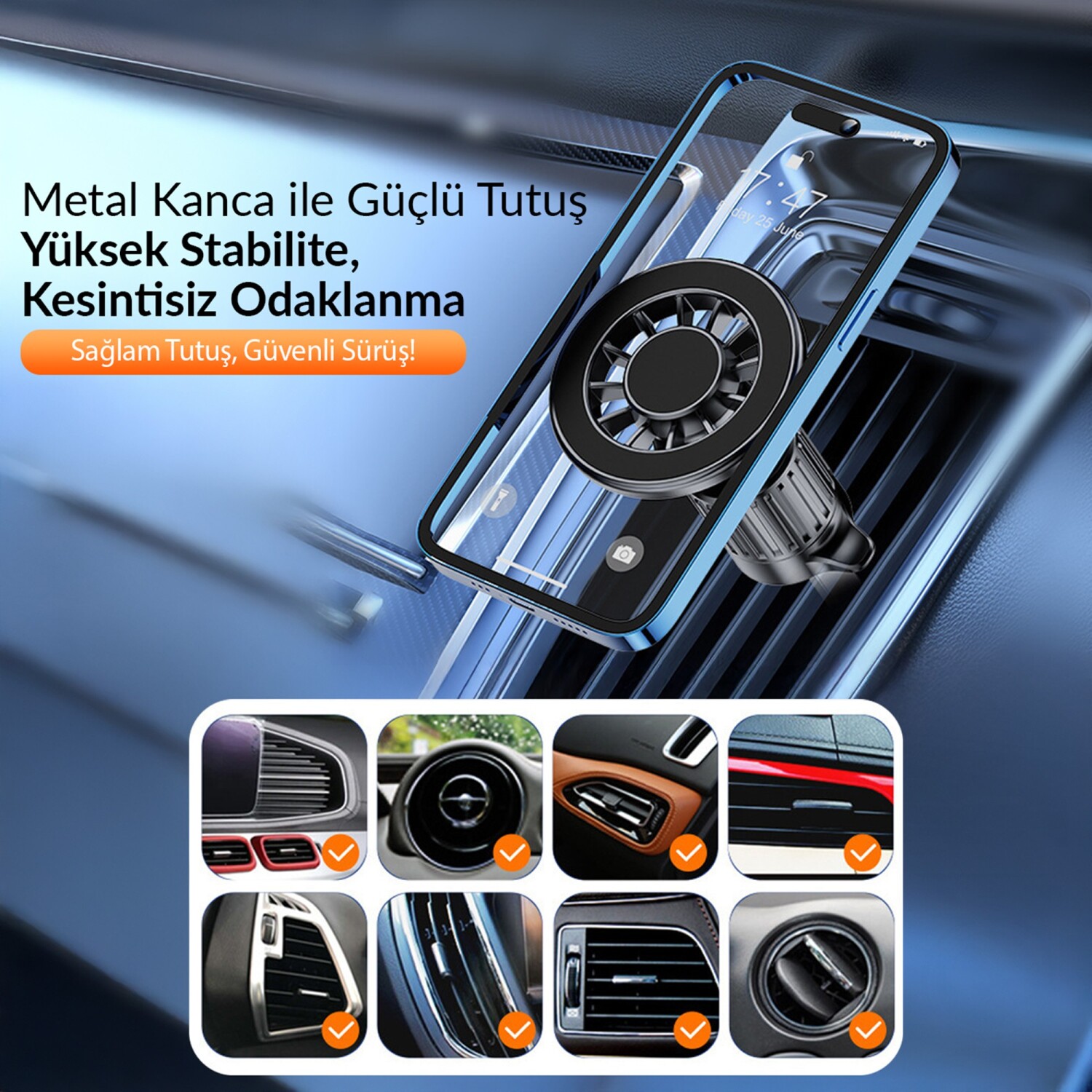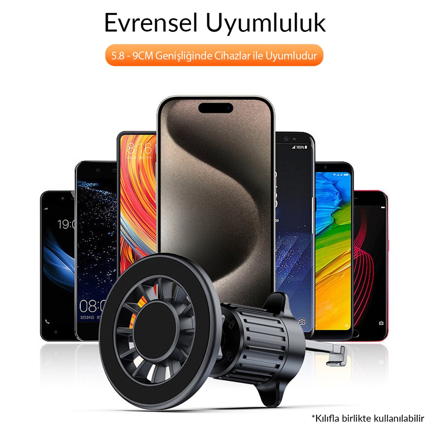 Mıknatıslı araç telefon tutucu özelliği sayesinde telefonunuzu tek elle kolayca takıp çıkarabilirsiniz. Magsafe uyumlu telefonlar için özel tasarlanmış manyetik sistem, güvenli ve sağlam bir tutuş sağlar.
