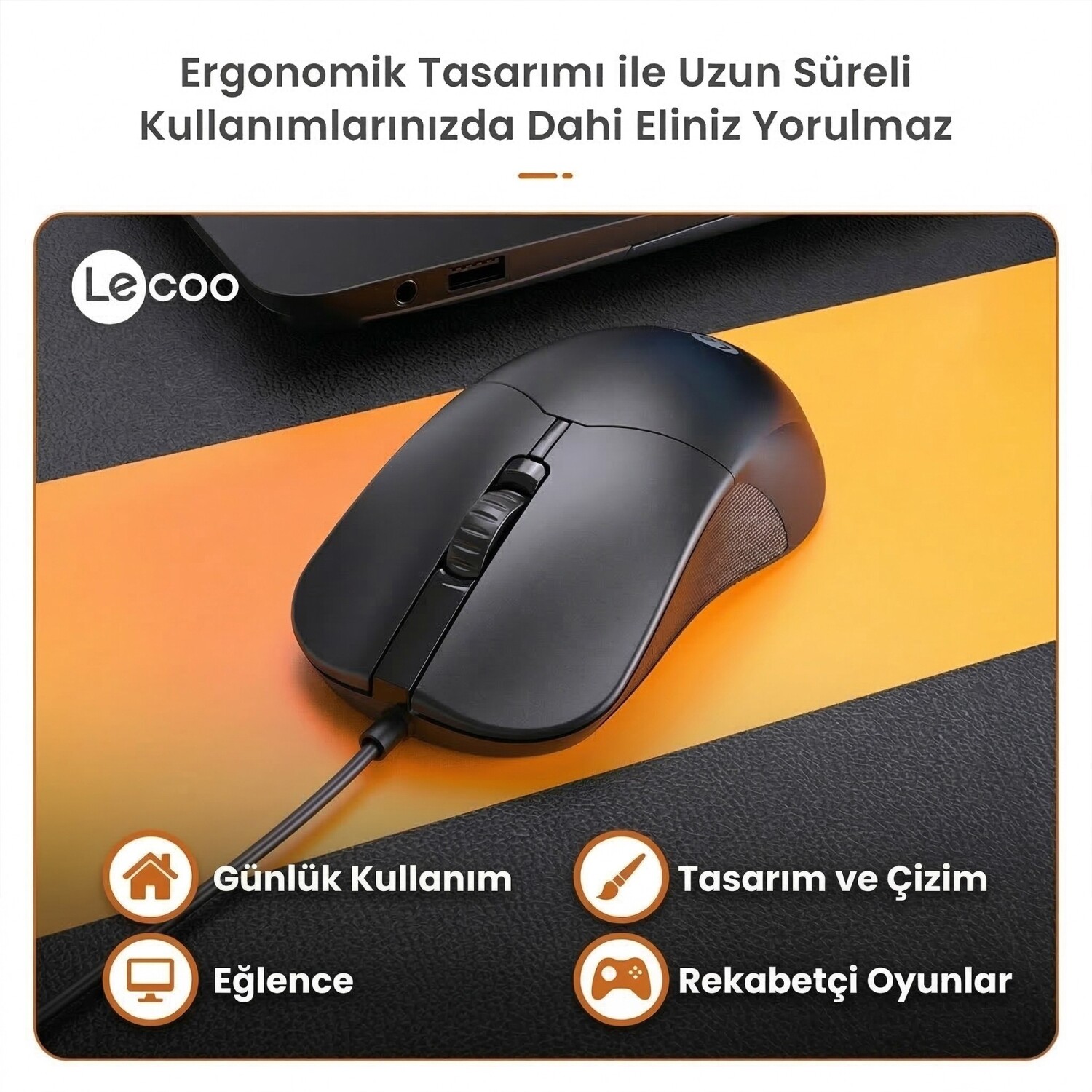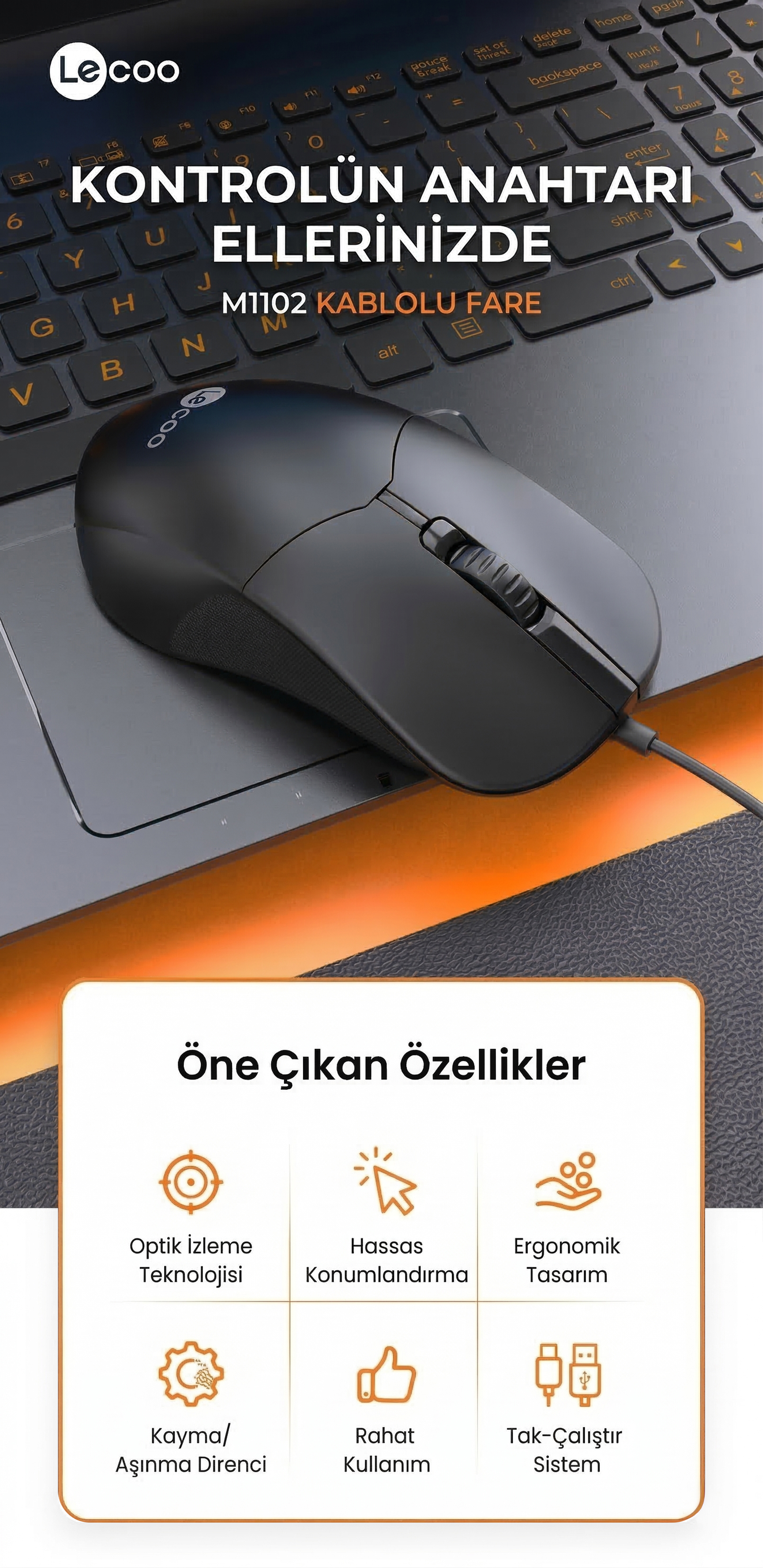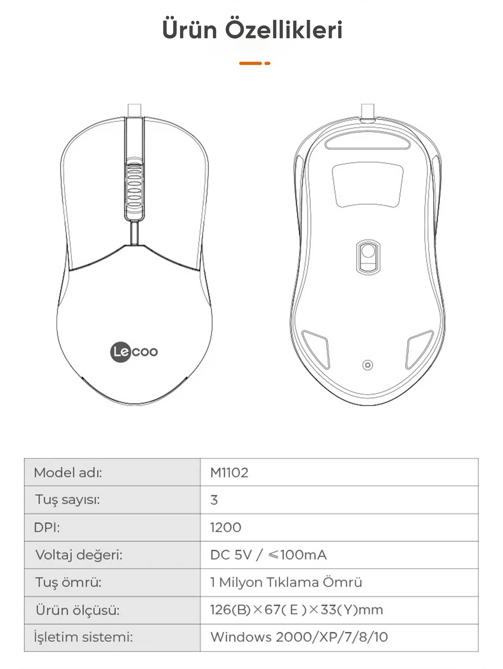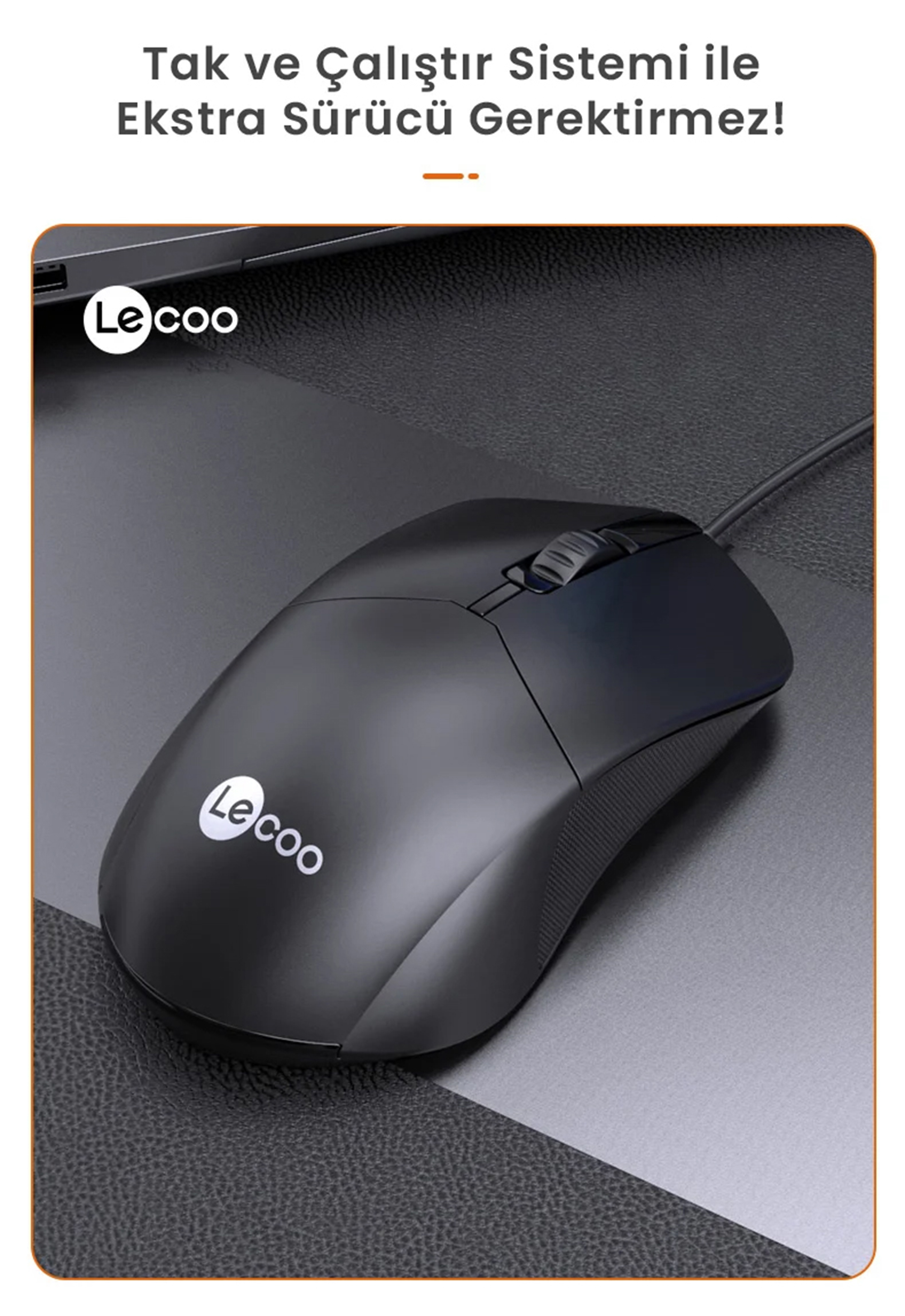 • 1 x Lecoo M1102 USB Kablolu Optik Mouse Siyah