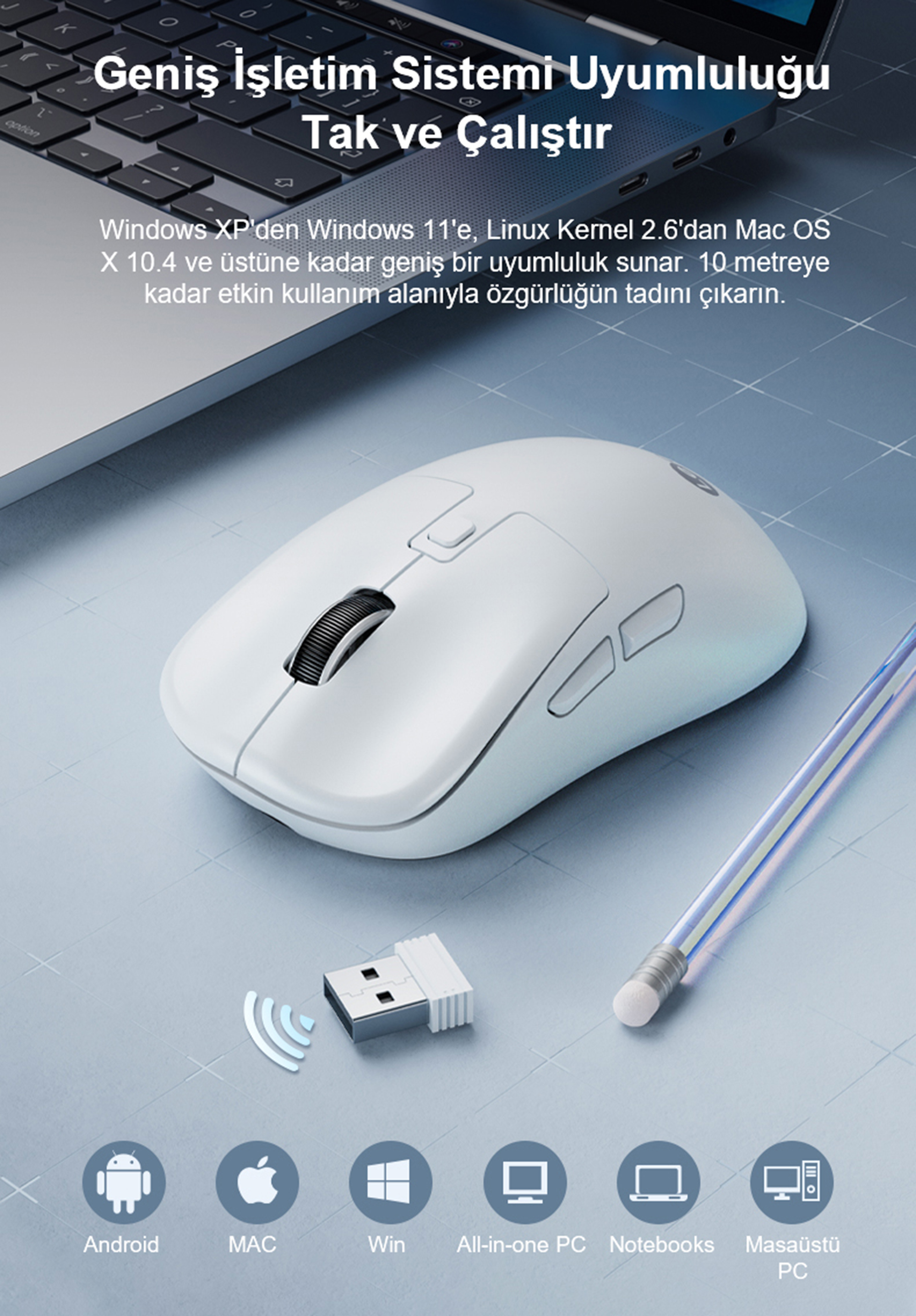 Geniş Uyumluluk ve 10 Metre Kablosuz Kullanım Mesafesi