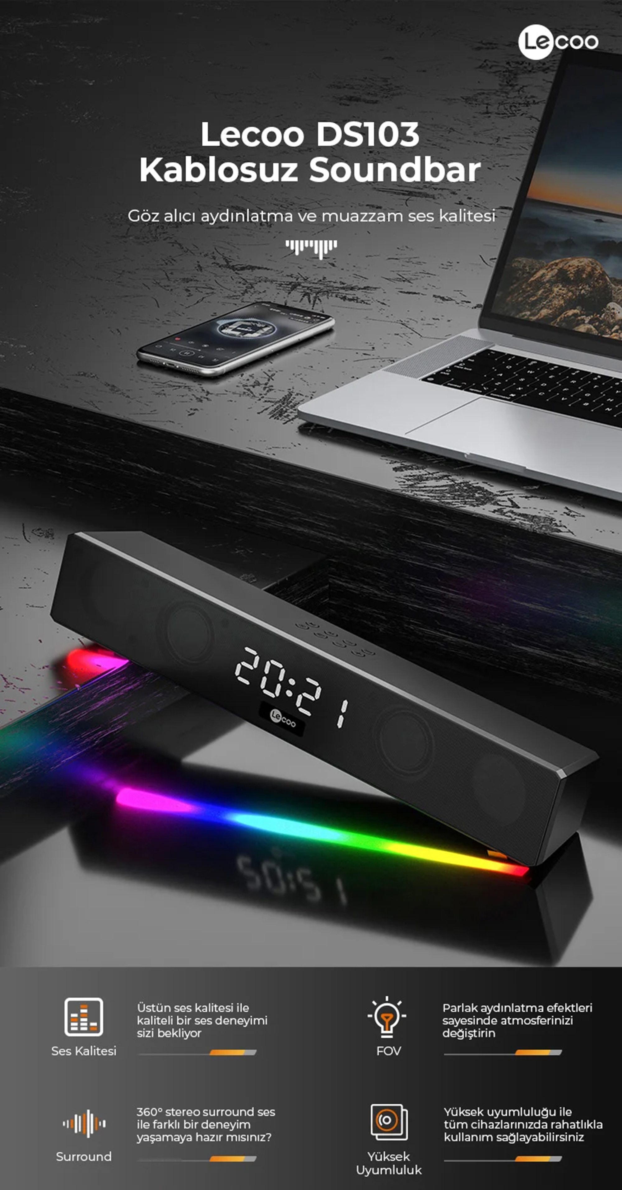 Lecoo DS103 RGB Bluetooth Stereo Siyah 10W Soundbar Speaker ile Ne Yapabilirim?