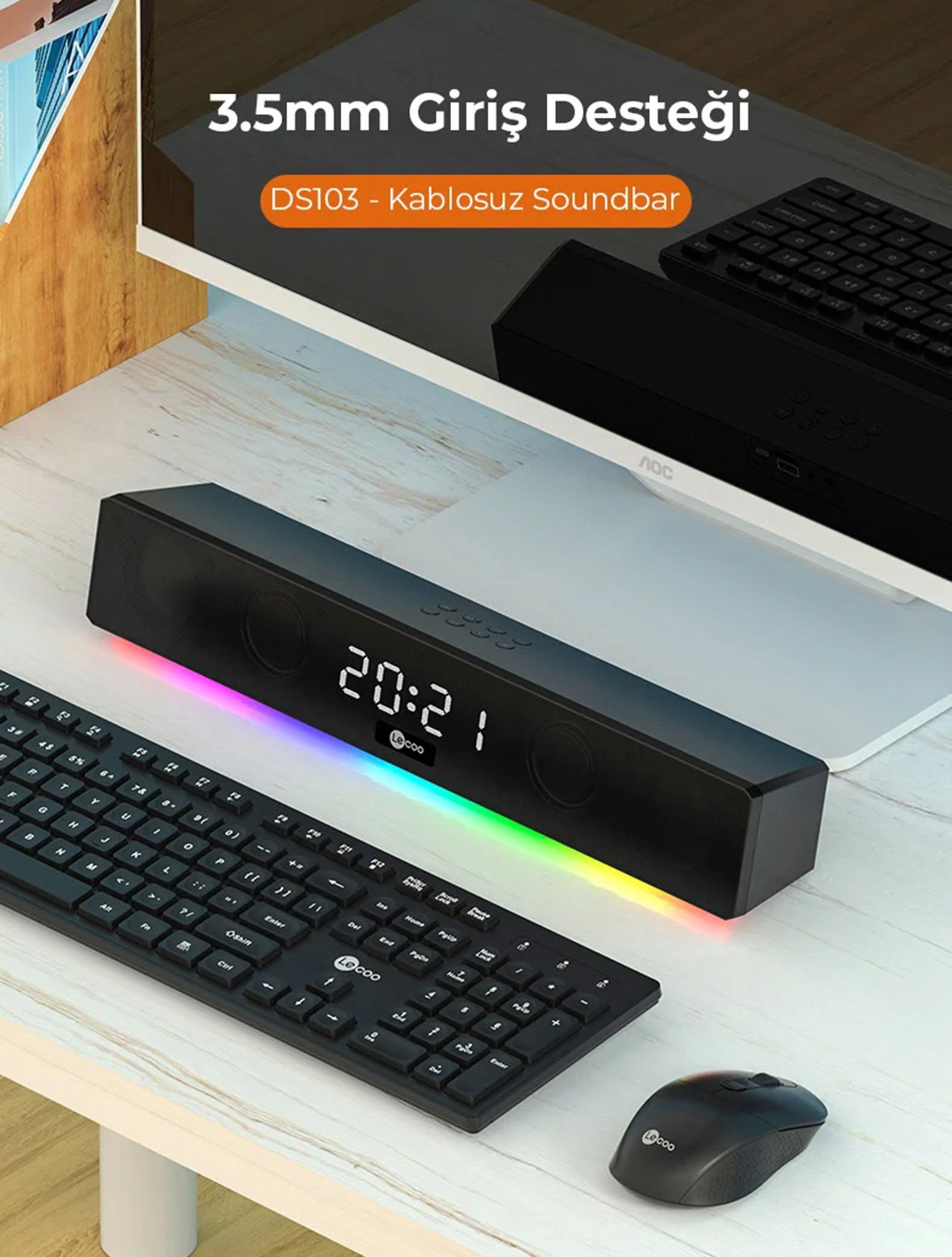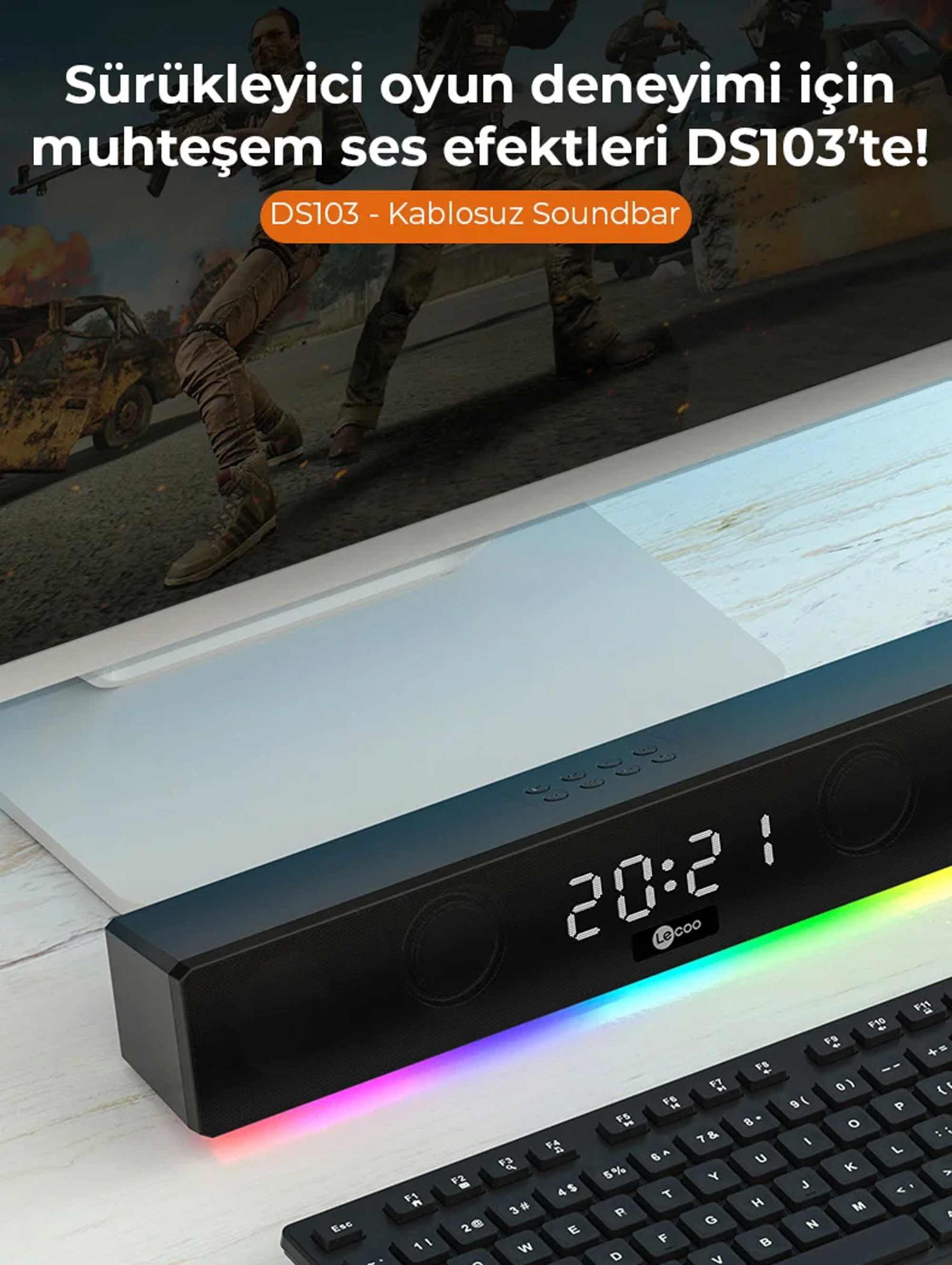 Minimalist ve ince yapısı ile öne çıkan Lecoo DS103, 41,5 cm uzunluğundaki kompakt boyutu sayesinde evde veya ofiste fazla yer kaplamaz. Siyah gövdesi ve RGB ışıkları, modern dekorasyonlarla mükemmel uyum sağlar.
