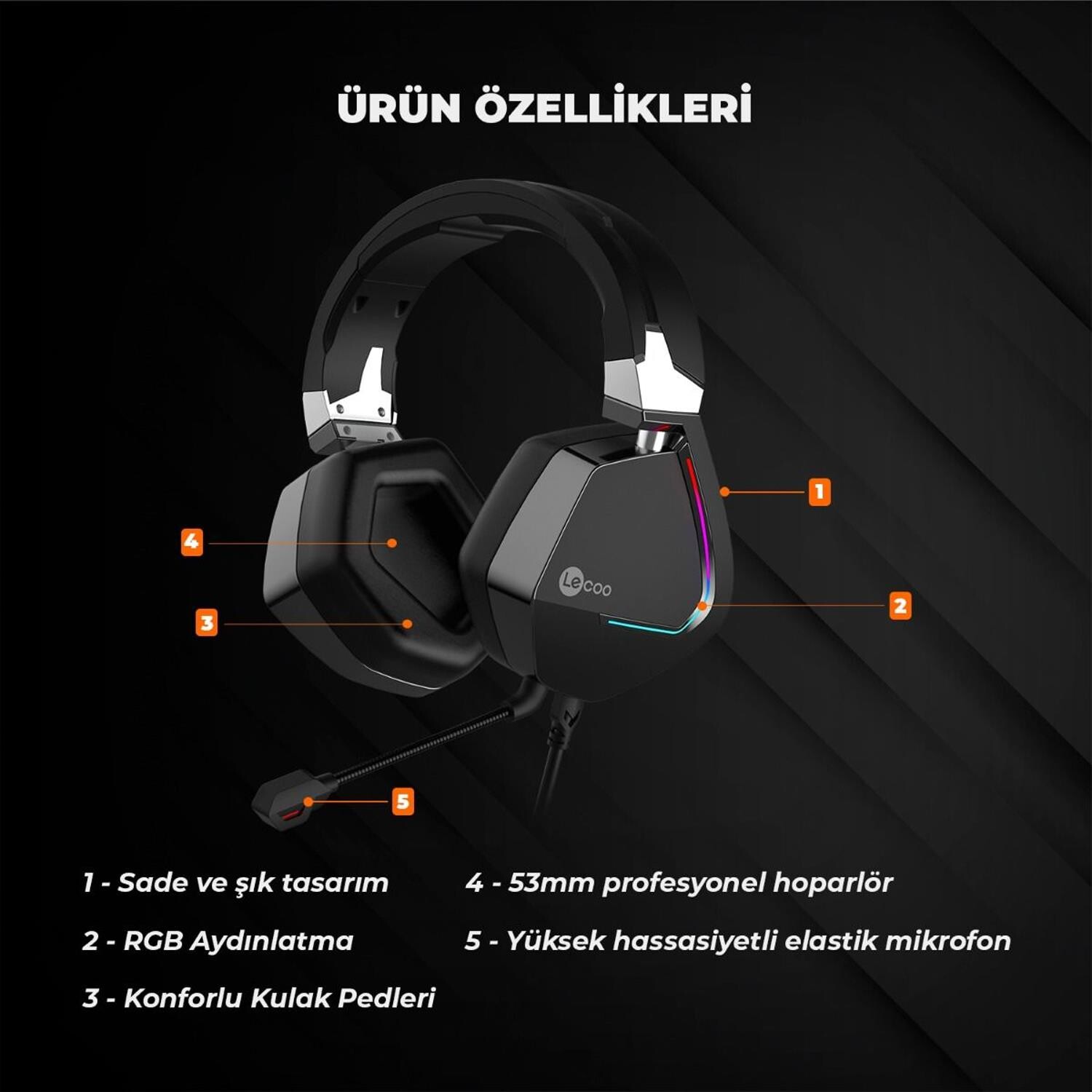 1x Lenovo Lecoo HT402 Kulak Üstü RGB Gaming Oyuncu Kulaklığı 3.5mm Jack + USB