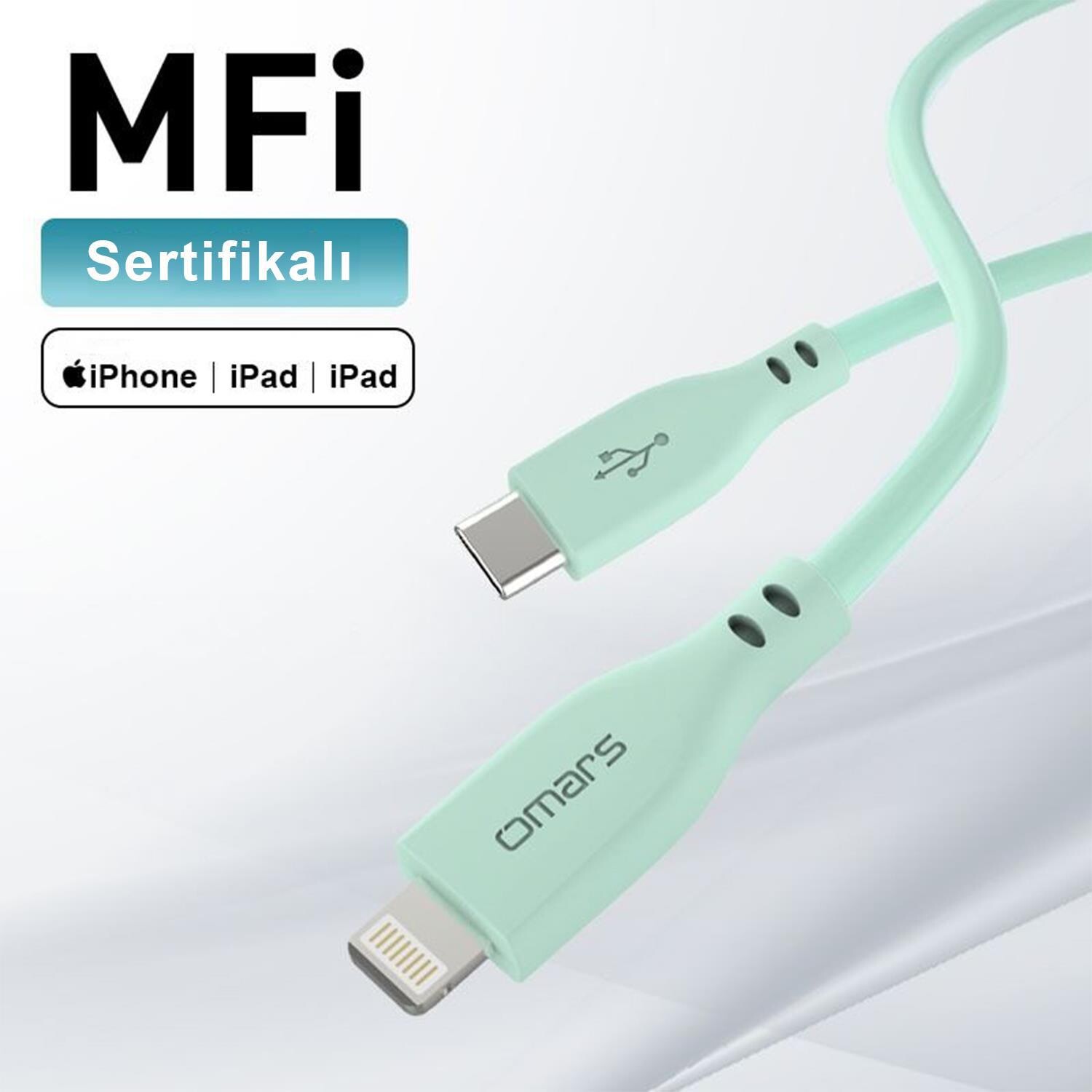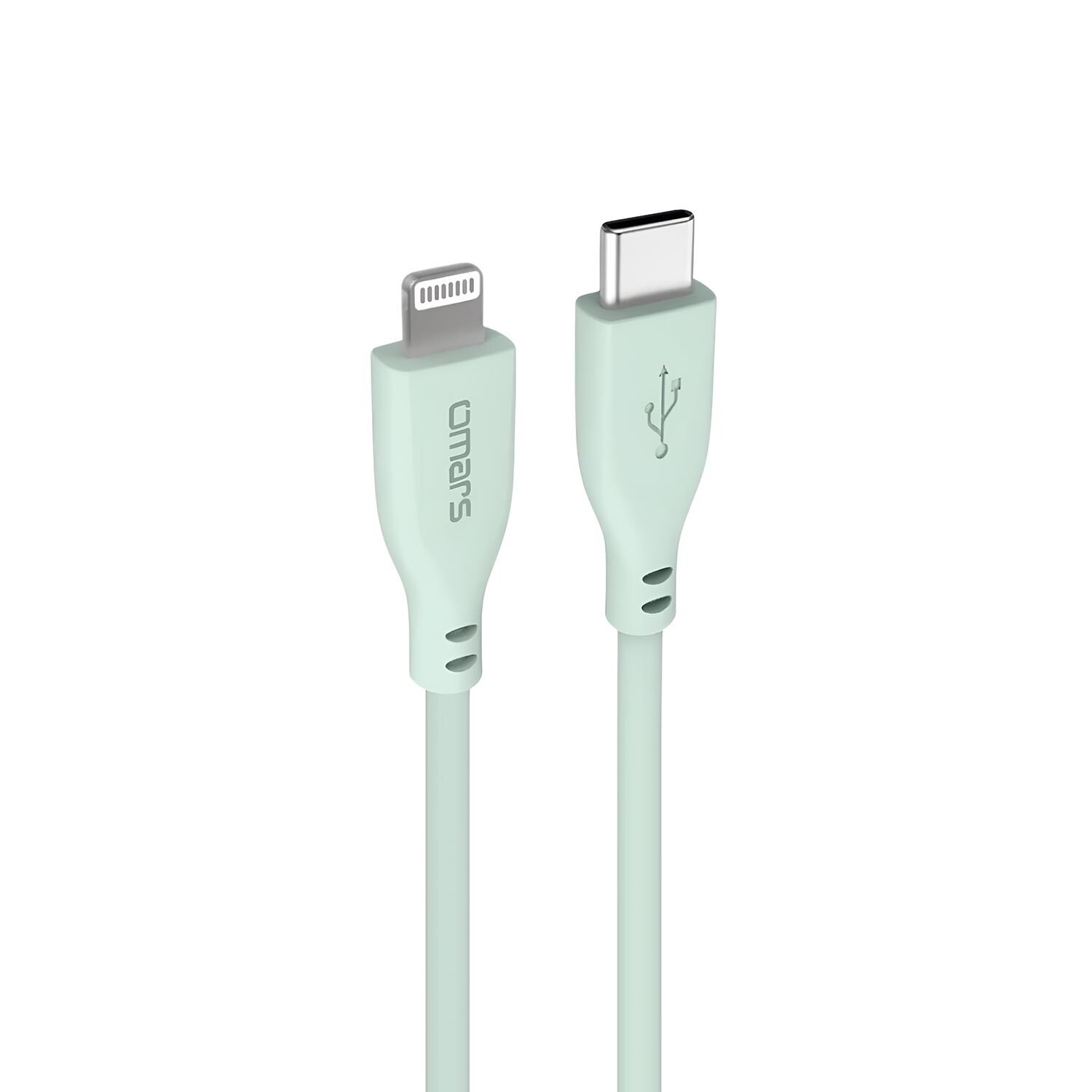 1 x Omars USB-C to MFI Lightning iPhone Silikon PD Hızlı Şarj Kablosu Yeşil