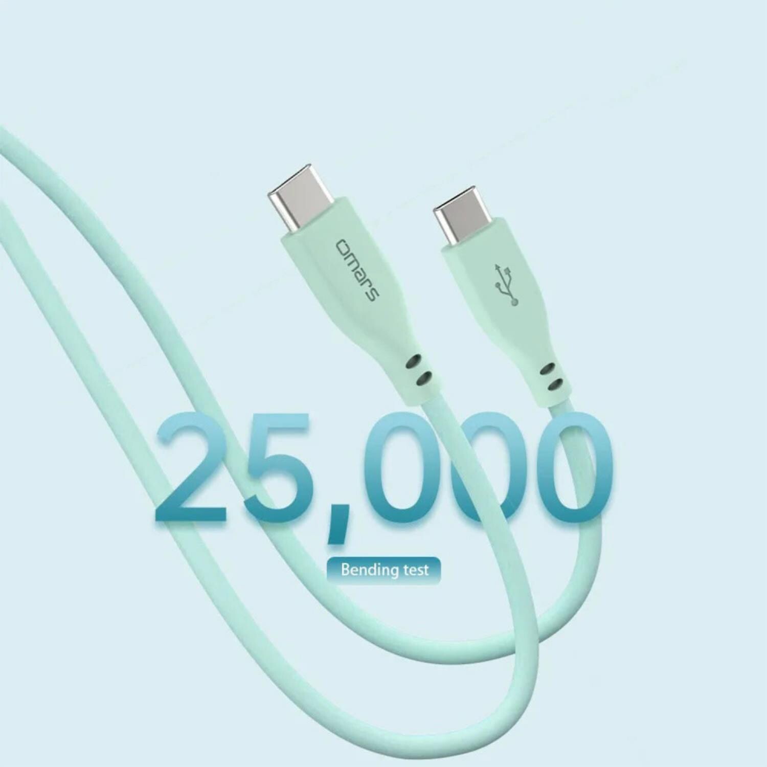 1 x Omars Type-C to Type-C Silikon PD Hızlı Şarj Kablosu Yeşil
