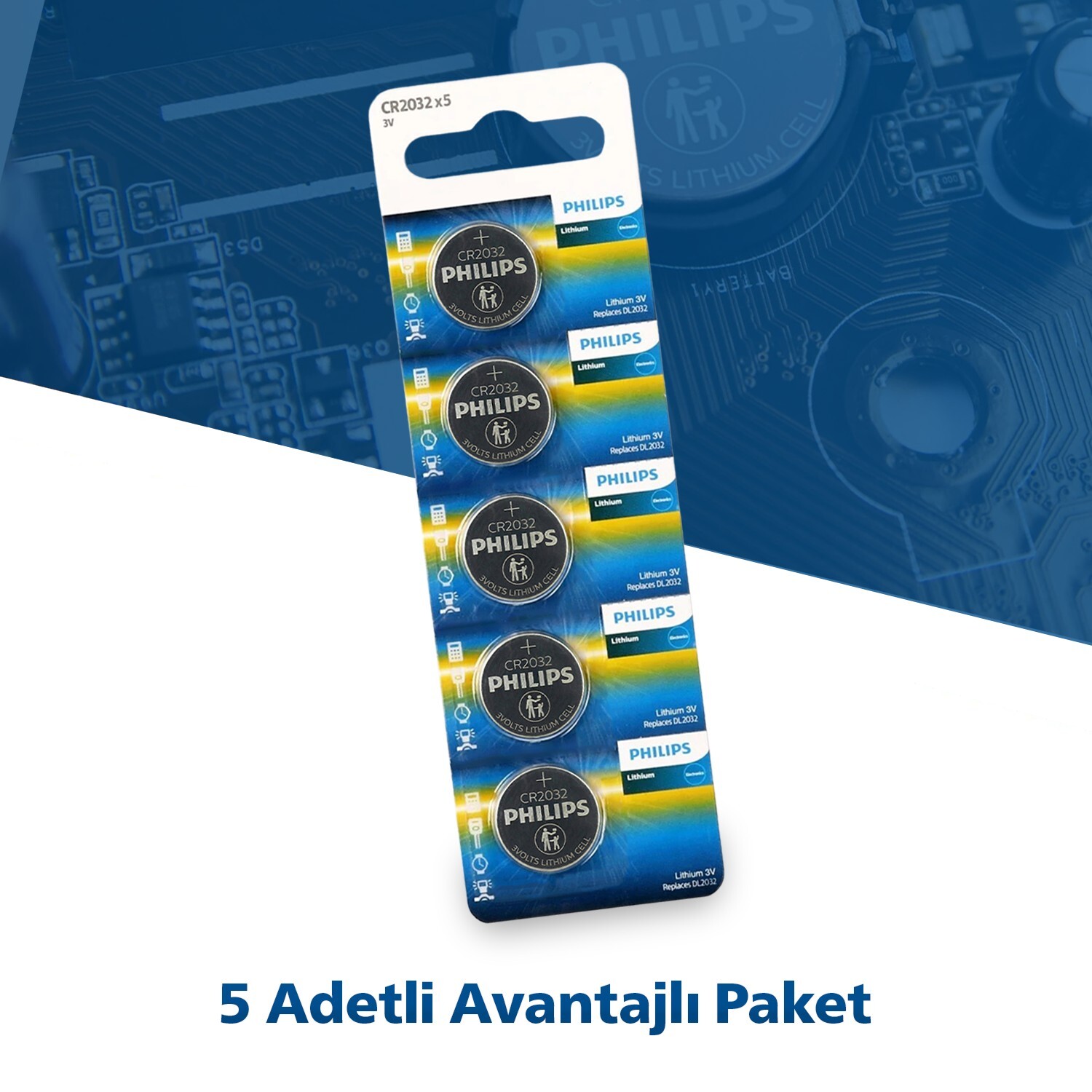 • 1 x 5'li Philips CR2032P5B/97 Lityum Pil Paketi