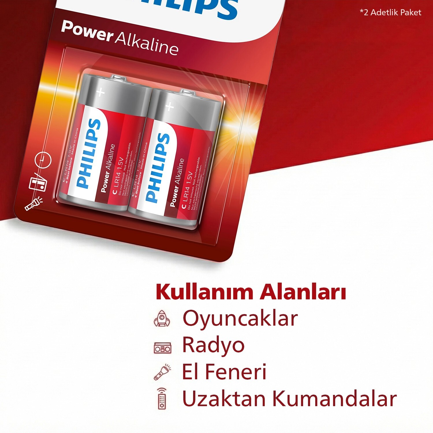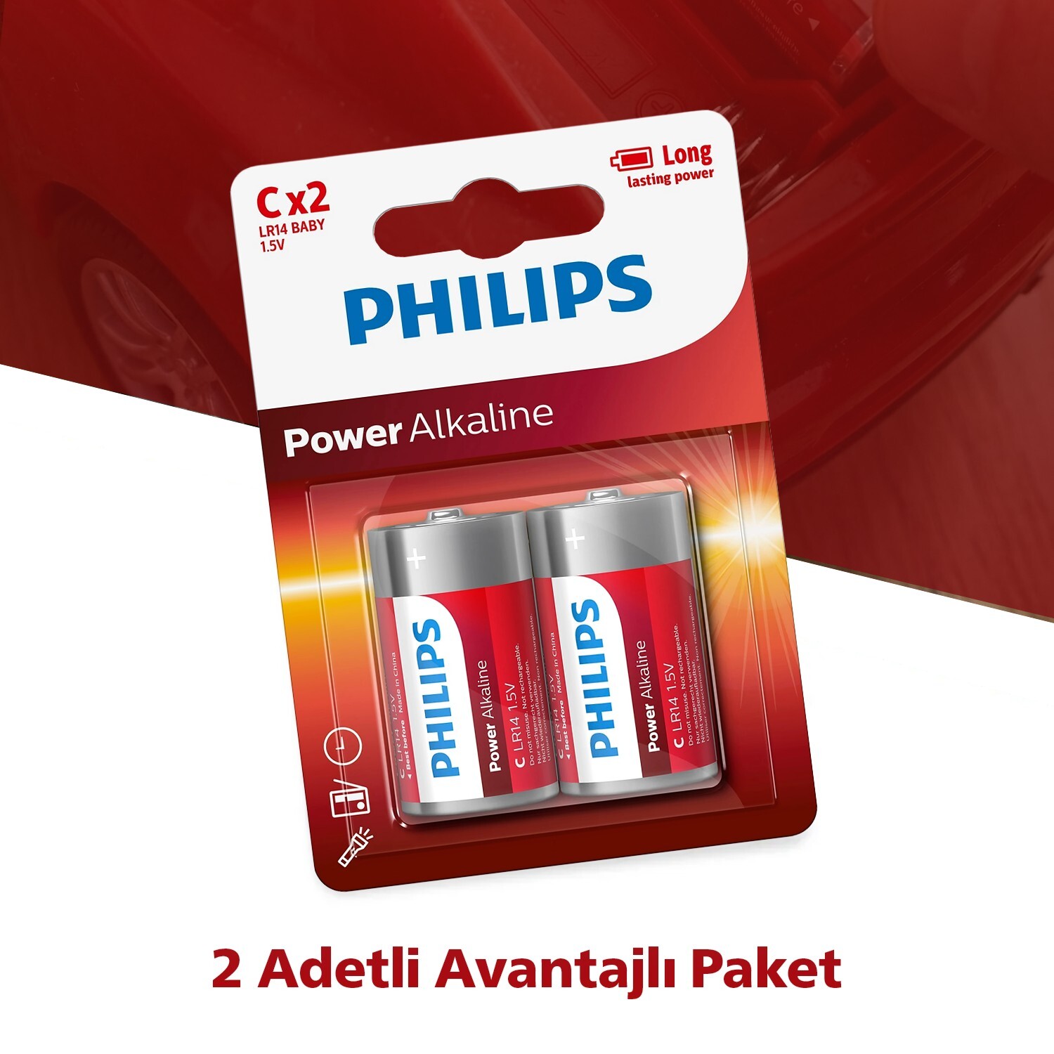 • 2 x Philips Power Alkaline LR14 (C Boy) 1.5V Pil
