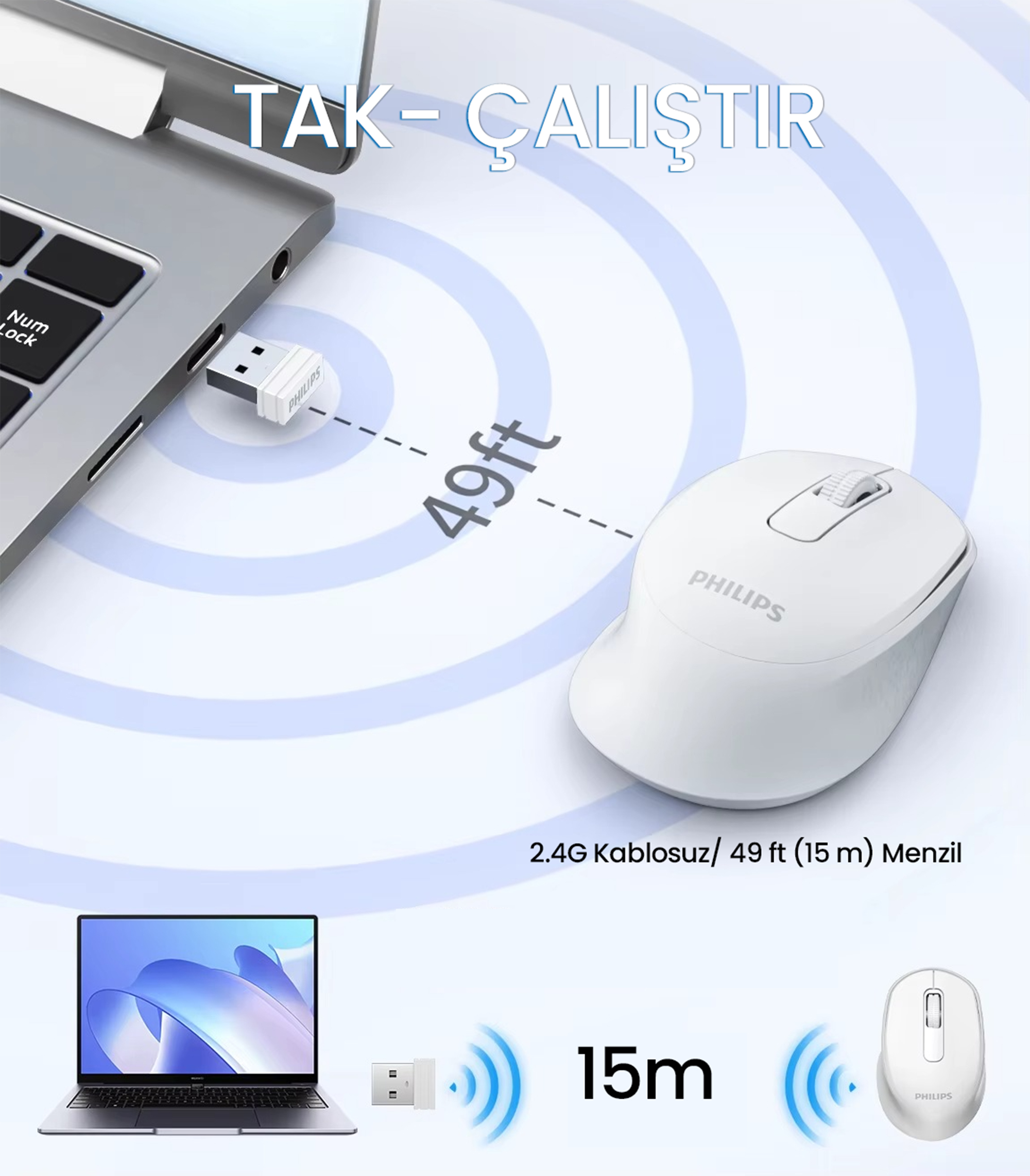 Kablosuz Menzil: 15 m (2.4GHz) / 10 m (Bluetooth)