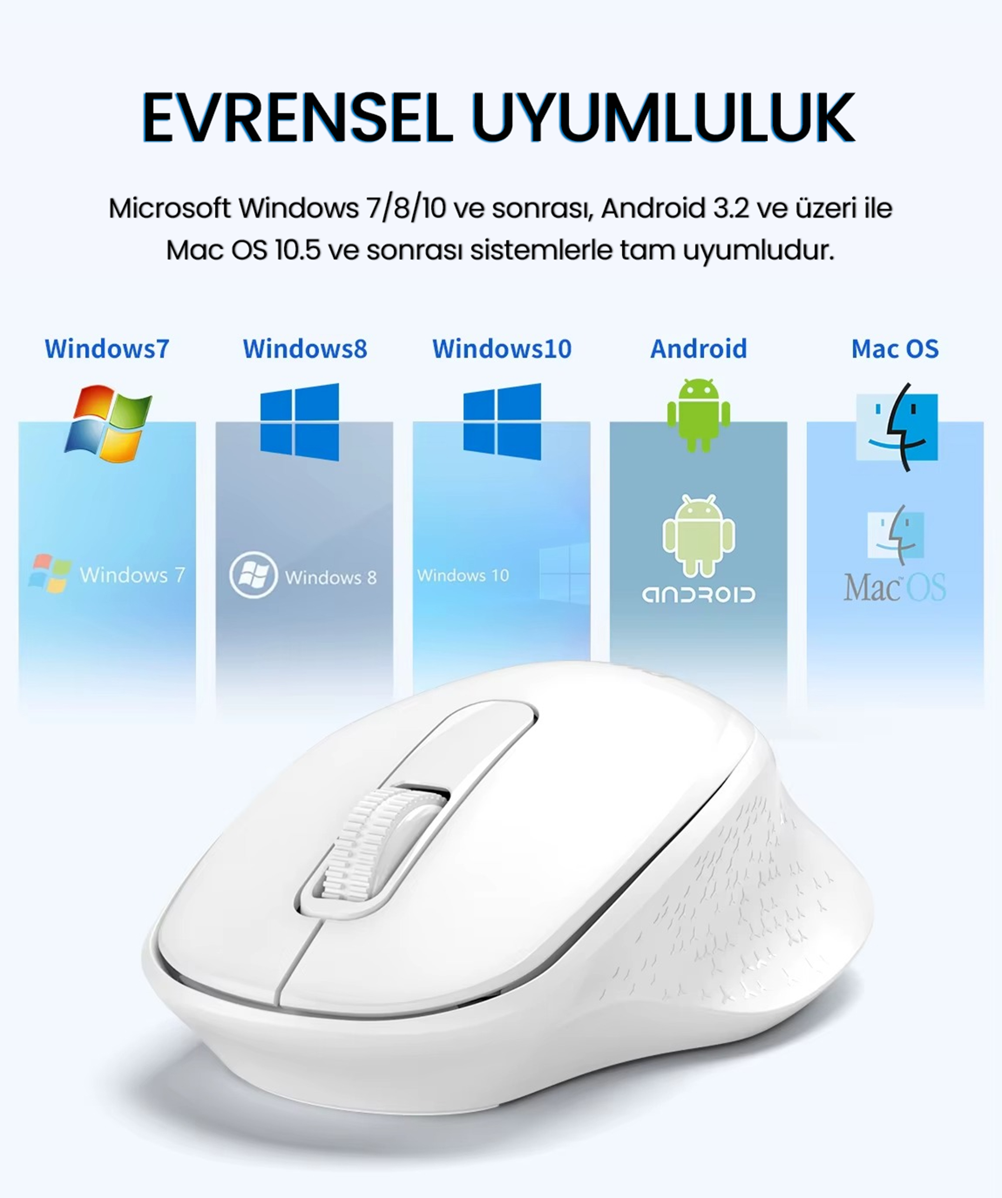 Gelişmiş bağlantı yapısı ve ergonomik tasarımıyla öne çıkan bu kablosuz mouse, hem ofis hem günlük kullanım için ideal bir çözümdür. 2.4GHz, Bluetooth 3.0 ve Bluetooth 5.0 desteği sayesinde farklı cihazlara kolayca bağlanabilir. Hafif gövdesi, hassas sensörü ve dayanıklı tuş yapısıyla uzun süreli kullanımlarda konfor sunar.