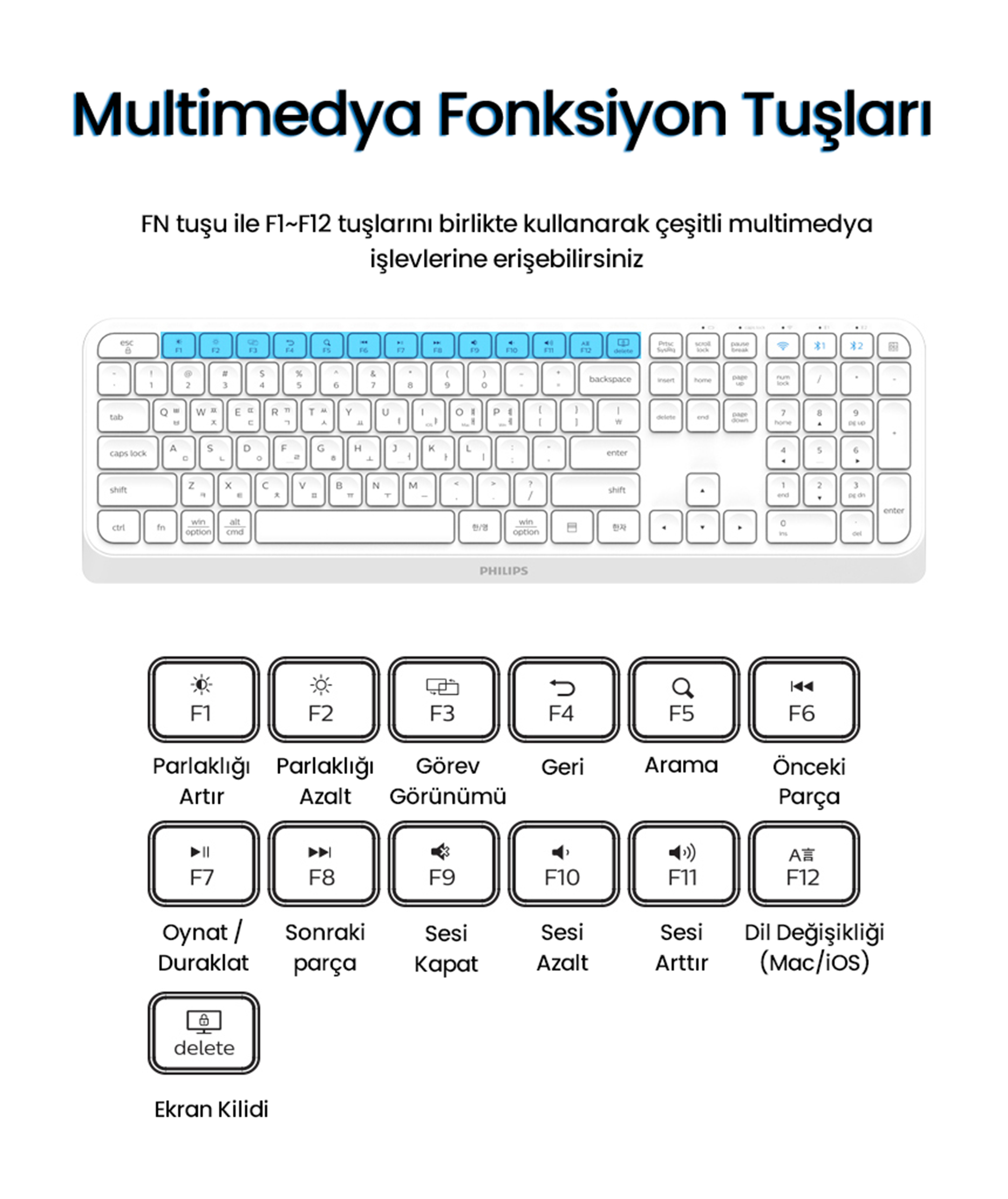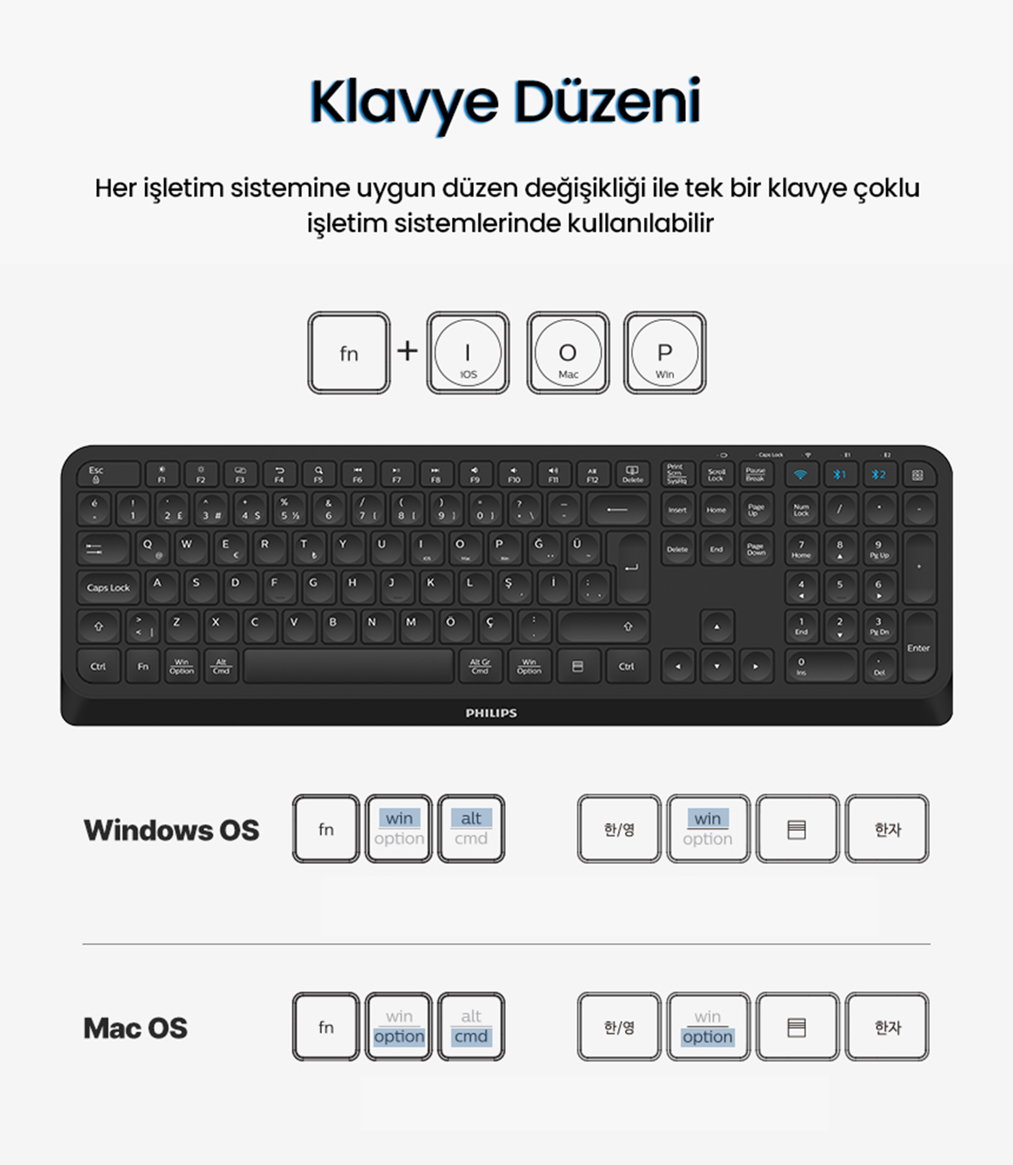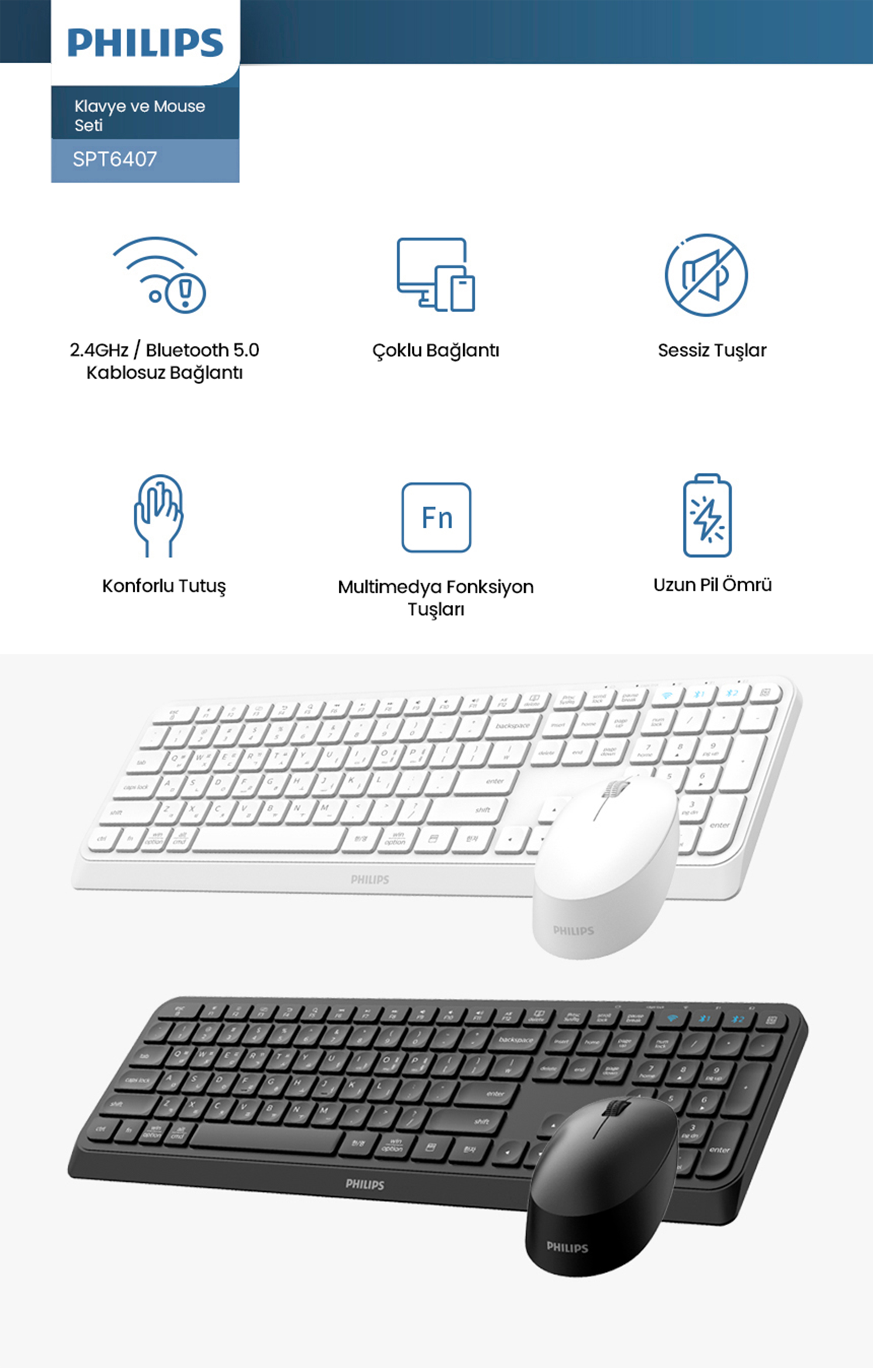 Hem iş hem de günlük kullanım için tasarlanan bu kablosuz klavye mouse seti, çoklu bağlantı seçenekleri ve dayanıklı yapısıyla yüksek performans sunar. 2.4GHz, Bluetooth 3.0 ve Bluetooth 5.0 desteği sayesinde farklı cihazlara kolayca bağlanabilir. Ergonomik tasarımı, hassas fare sensörü ve uzun tuş ömrü ile kullanıcı deneyimini üst seviyeye taşıyan bu set, ofis, ev ve mobil çalışma ortamları için ideal bir çözümdür.