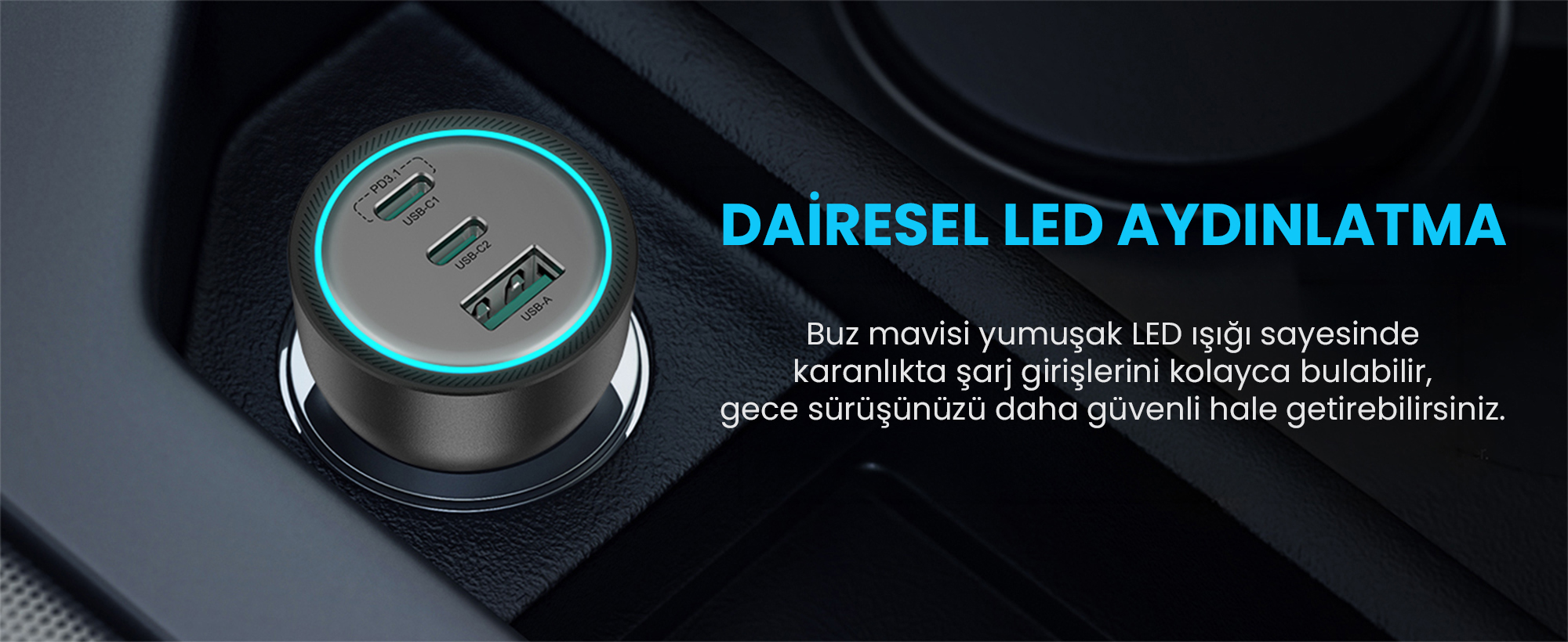 Engebeli yollarda ve zorlu sürüş koşullarında çakmaklık yuvasına tam oturan titreşim önleyici yapısı sayesinde kesintisiz güç aktarımı sağlar. Ultra kompakt boyutları aracınızda yer kaplamazken, dairesel buz mavisi LED ortam aydınlatması gece sürüşlerinde bağlantı noktalarını gözünüzü almadan kolayca bulmanızı sağlar.