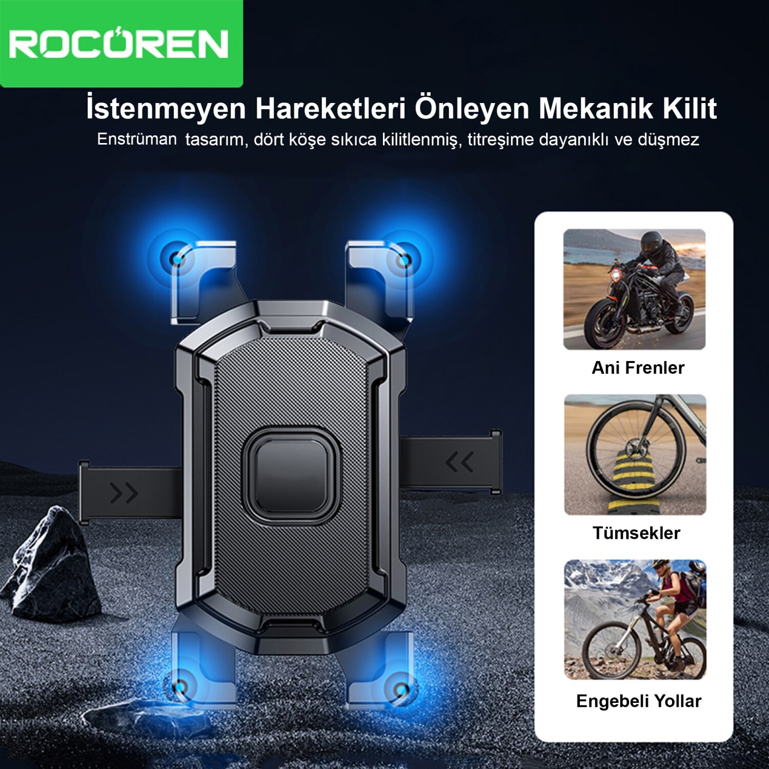 Güçlü sabitleme mekanizması sayesinde telefonun sarsıntılı yollarda bile düşmesi önlenir. Böylece farklı